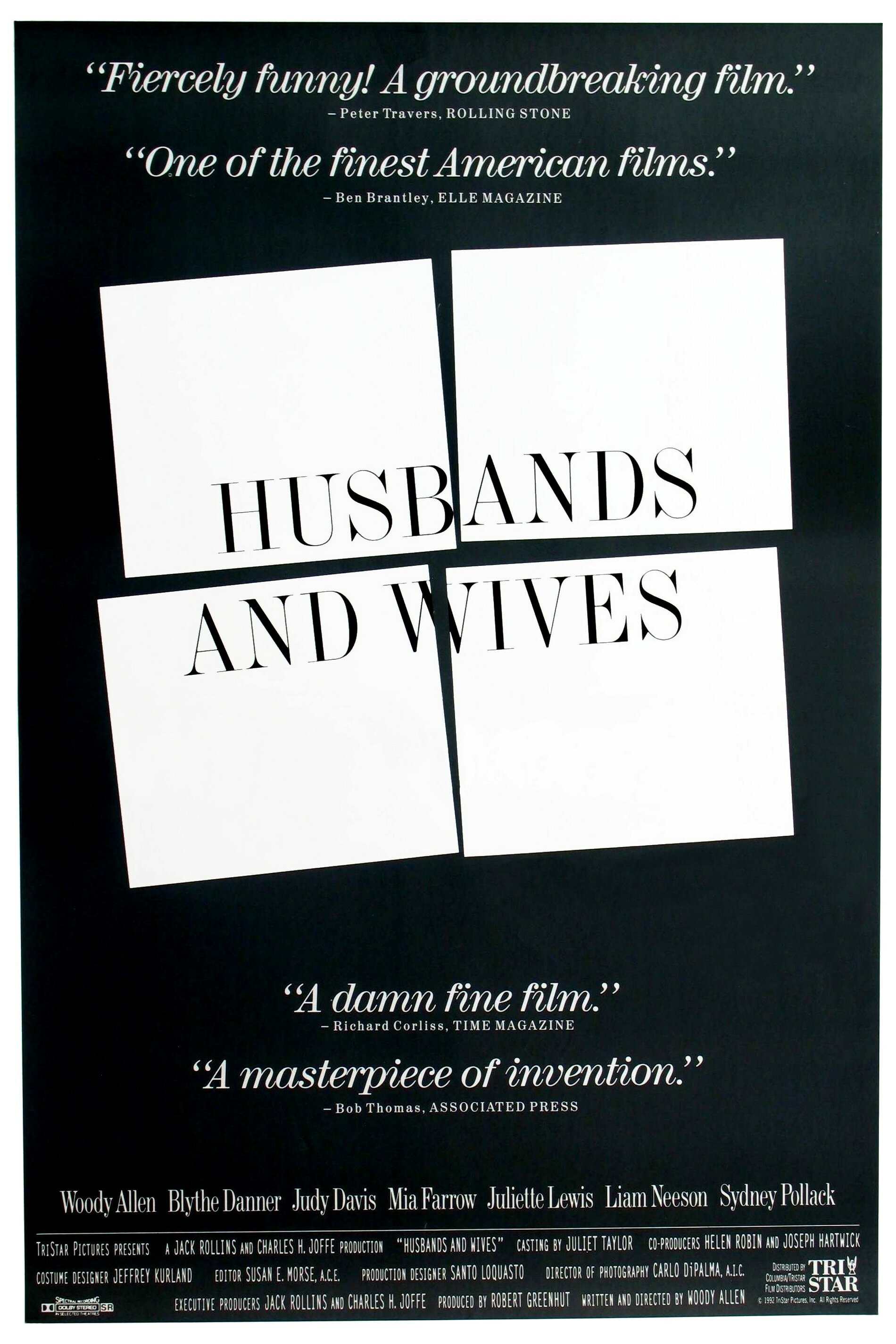 «Мужья и жены» — одна из самых необычных режиссерских работ Вуди Аллена, которую я рекомендую к просмотру всем ценителям авторского кино и поклонникам творчества выдающего американского режиссера.
