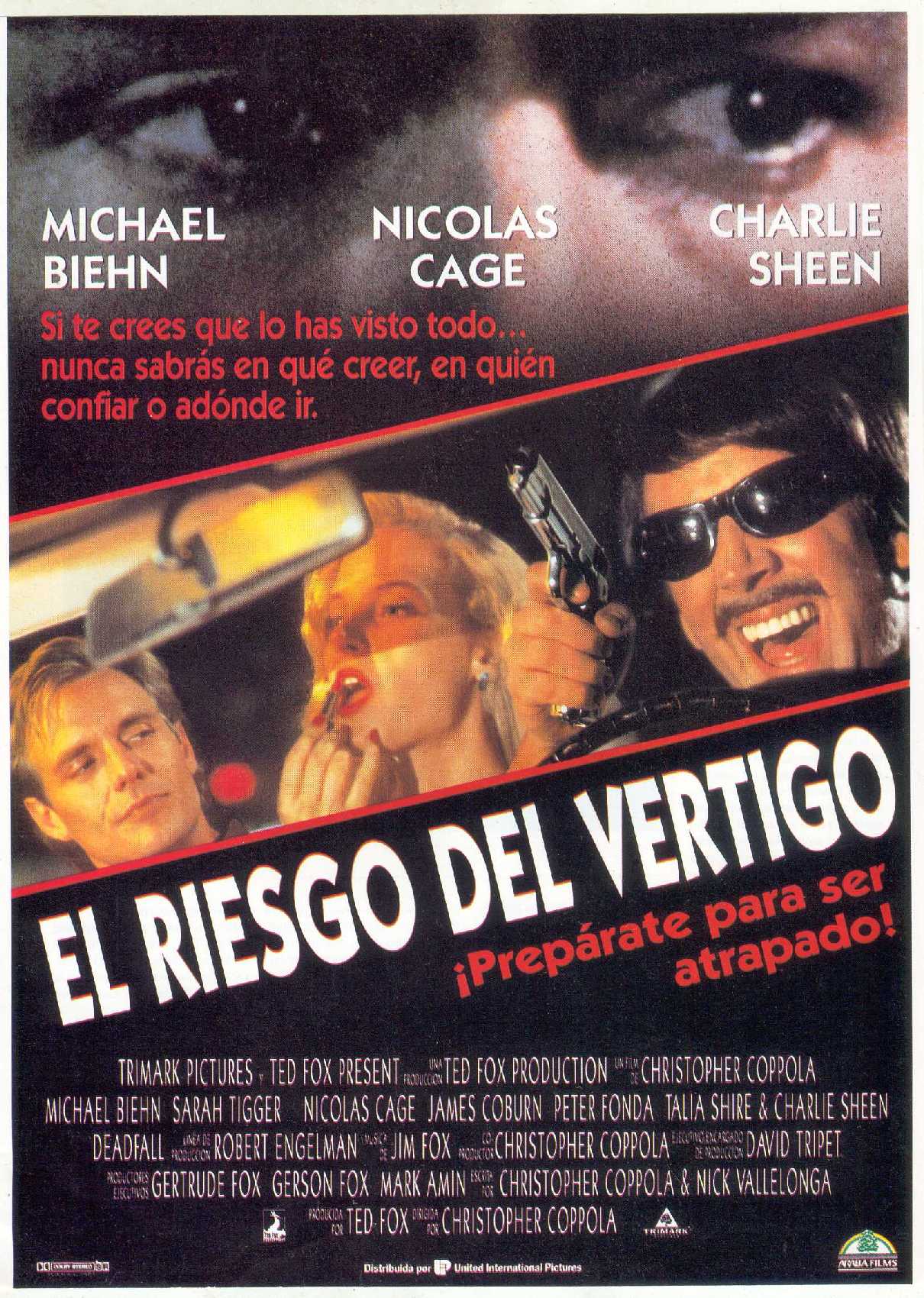 Совершенно не порадовал в данной постановке Майкл Бьен, талантливый и харизматический актер, некогда отличившийся в таких картинах, как «Терминатор» и «Чужие». Не сумев понять основной замысел режиссера, заставляющего свою картину блуждать между жанрами от авантюрной драмы до неоднозначной комедии, Бьен старался работать по собственным драматическим лекалам, которые по правде говоря далеко не всегда подходили к той или иной сцене. Конечно, назвать старания актера абсолютно бессмысленными также нельзя, однако имея в распоряжении столь интересного исполнителя, Кристофер Коппола обошелся с ним откровенно преступно, на задействовав потенциал Бьена даже на самую малость. Но если оценить работу Николаса Кейджа, Питера Фонды и даже Чарли Шина, появившегося в кадре всего лишь на пару минут, то к Майклу Бьену не должно возникнуть ни единого вопроса. В особенности разочаровал здесь Кейдж, блестяще отыгравший в «Поцелуе вампира» и «Воспитании Аризоны», но совершенно не совладавший со своим Эдди, у которого между прочим был отменный потенциал и возможность увести в тень всех остальных героев «Смертельного падения». Однако Кейдж совершенно не хотел подыгрывать Кристоферу Копполе, словно сделав ему величайшее одолжение своим банальным появлением в кадре. Подобная отстраненность не пошла фильму на пользу и никоим образом не сказалась на репутации самого актера, который прекрасно понимал, где необходимо стараться, а в каких проектах стоит себя беречь и не разбрасывать эмоции понапрасну.