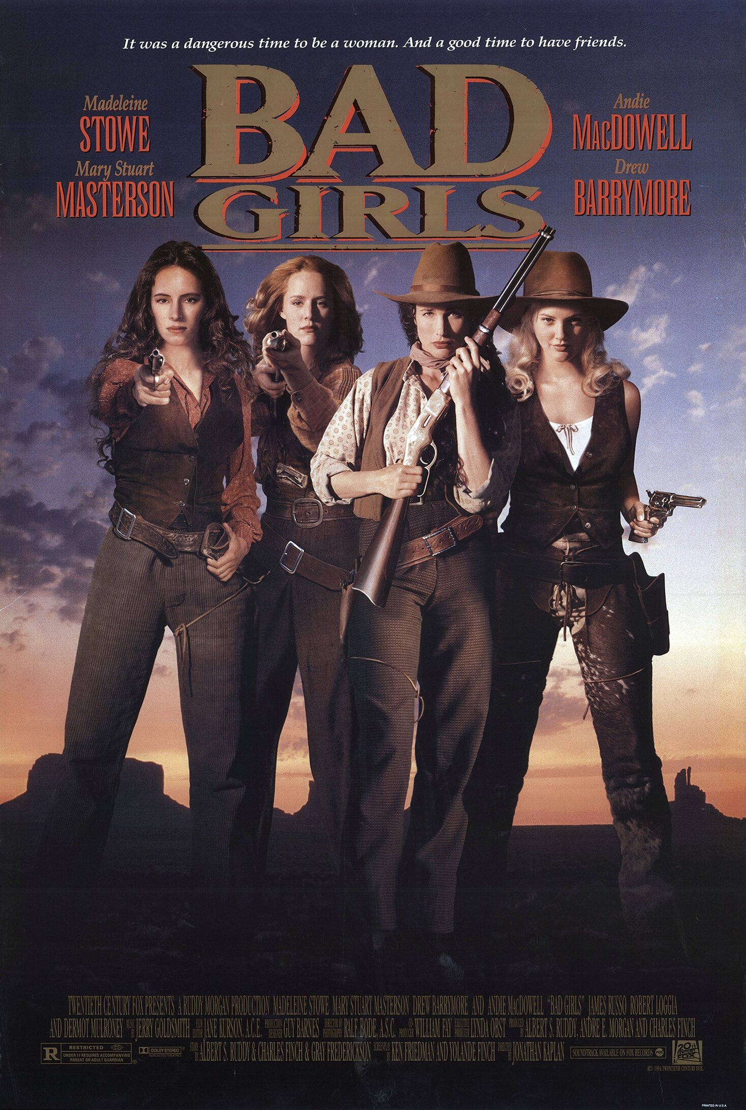 Актрис заставили обучиться верховой езде и стрельбе. И очень обидно, что все усилия пошли прахом, потому что всё равно сцены эти смотрятся глупо, ибо насыщены уже перечисленными минусами да ещё и какая-то заторможенность происходящего постоянно ощущается. Ну, одним словом – фарс. А ведь актрисы-то неплохие и на тот момент бывшие на пике своей популярности. Но что-то сыграть дали только Мэделин Стоу, остальные смотрятся никчёмными и неуместными безголосыми девушками, которые, если их убрать, никакого влияния на сюжет не окажут. Им просто нечего было играть, абсолютно нечего. Да и порою было видно, что и неохота было это делать.