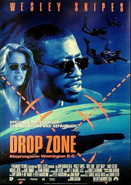 Этот фильм вполне можно назвать одним из самых ярких в карьере Янси Батлер, которая на заре 90-х запомнилась как раз ролью в Drop Zone и участием с Ванн Даммом в «Трудной мишени» в 1993-м. Уэсли Снайпс, будучи на пике популярности в уходящее десятилетие ХХ века, вновь выступил в качестве крутого парня, но при этом не лишенного чувства юмора, что особенно ярко прослеживается в его поведении после первого прыжка с парашютом и ходьбе в мокром комбинезоне по колено в воде, а также по эпизоду с дракой в баре, где с хладнокрвоием и огоньком в глазах он дал совет кому что дать. Гэри Бьюзи не был бы самим собой. Если бы вновь не сыграл плохого и притом безумного парня. Да, в 1991-м году он отметился положительным образом агента ФБР в боевике «На гребне волны» с Киану Ривзом и Патриком Суэйзи, но все же зрителю Бьюзи запомнился именно плохишом.