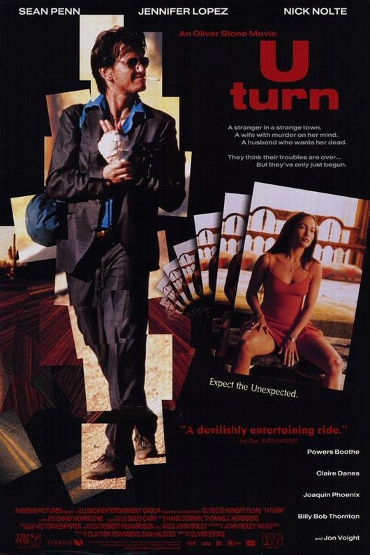 «Поворот» (U Turn, 1997) — очень неожиданное в послужном списке Оливера Стоуна и довольно хулиганское кино. Начинаясь как очередной криминальный междусобойчик об очередном бандите-неудачнике, спасающемся от преследователей (и чем-то напоминая Родригесовский «От заката до рассвета»), фильм повторяет сюжетные ходы классических хорроров с «поворотом не туда», чтобы отвезти протагониста вместе со зрителем в эдакую деревню дураков, американскую глубинку, приключения в которой начнут напоминать психоделический триллер.