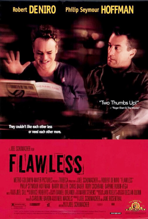 Как порой интересно бывает наткнуться на такую вот забытую всеми картину как «Без изъяна» и оценить ее по достоинству. Картину, которая стала, пожалуй, самой странной в режиссерской биографии Джоэля Шумахера и уж точно не проходной в карьере таких актеров как Роберт Де Ниро и Филип Сеймур Хоффман. Последний, вообще, выдает здесь такой уровень игры, что в пору задуматься, куда смотрели киноакадемики в 1999 году обделив премиями и номинациями этого талантливого во всех отношениях исполнителя. Роль трансвестита Расти сыграна Хоффманом поразительно достоверно и по глубине актерского мастерства ни чем не уступает, к примеру, его оскароносной роли в «Капоте», где Филип также играл человека с нетрадиционной сексуальной ориентацией. Ну, да ладно, оставим этот вопрос на совести американских киноакадемиков и перейдем к описанию самого фильма.