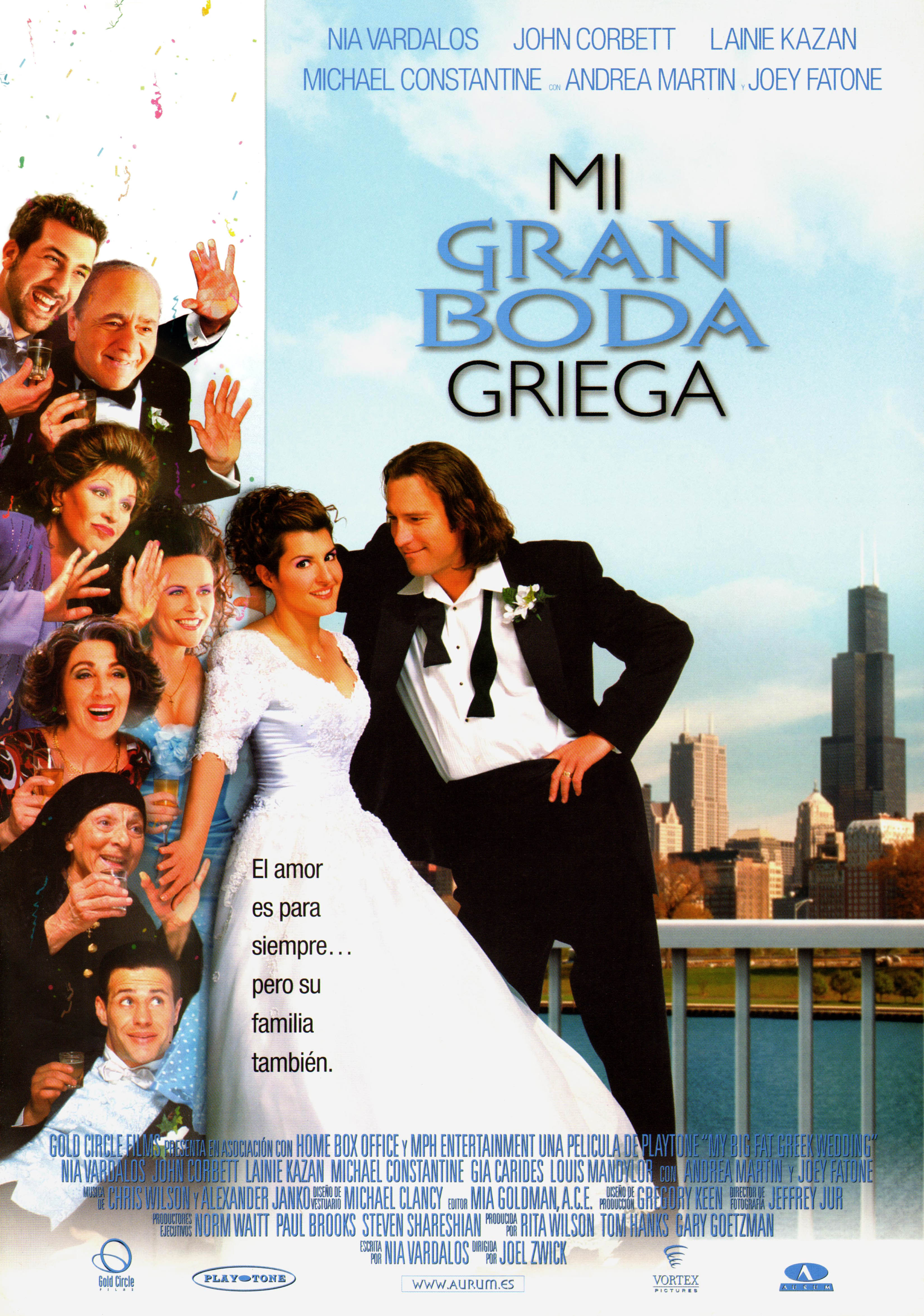 Родившаяся в Виннипеге (это в Канаде, кто не в курсе) этническая гречанка Ниа Вардалос начинала свой творческий путь с выступлений в стенд-апе (наш аналог — всем известное шоу «Комеди Клаб»). Нескольким позже она взялась за ручку и написала пьесу, назвав её «My Big Fat Greek Wedding», что в полном переводе означает «Моя большая, жирная греческая свадьба», придав уже тем самым сатирическую ноту своей работе. Нельзя сказать, чтобы пьеса пользовалась большим успехом, но актриса Рита Уилсон увидела Нию Вардалос и уговорила своего мужа Тома Хэнкса (да-да, именно так!) вложить капитал в экранизацию романтической пьесы с сильным этническим уклоном в её юморе. Никто не ожидал, что картина принесёт её создателем чуть меньше четырёхсот миллионов долларов в мировом прокате, а Нию Вардалос номинируют на «Оскар» в категории «Лучший оригинальный сценарий». Позже Вардалос напишет сценарий для «Ларри Крауна», в котором главную мужскую роль сыграет Хэнкс, но это уже совсем другая история.