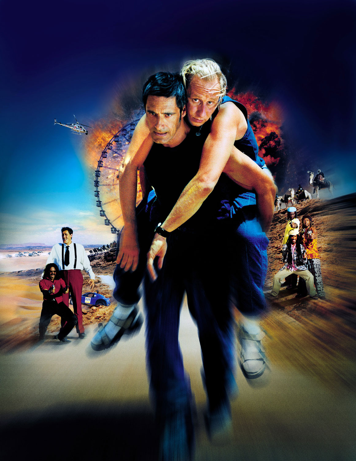 Невероятные сцены погонь — красивые и безумно смешные одновременно… Чертово колесо, кубарем несущееся по столице Франции и сметающее все на своем пути; пули, отталкивающиеся от зубов; зубы, вылетающие в писсуар; негры с белыми гениталиями; скоростные машины; верблюды-феррари; танцы; драки — все смешалось. Вот уж действительно полный привод. Браво, Франция!!!