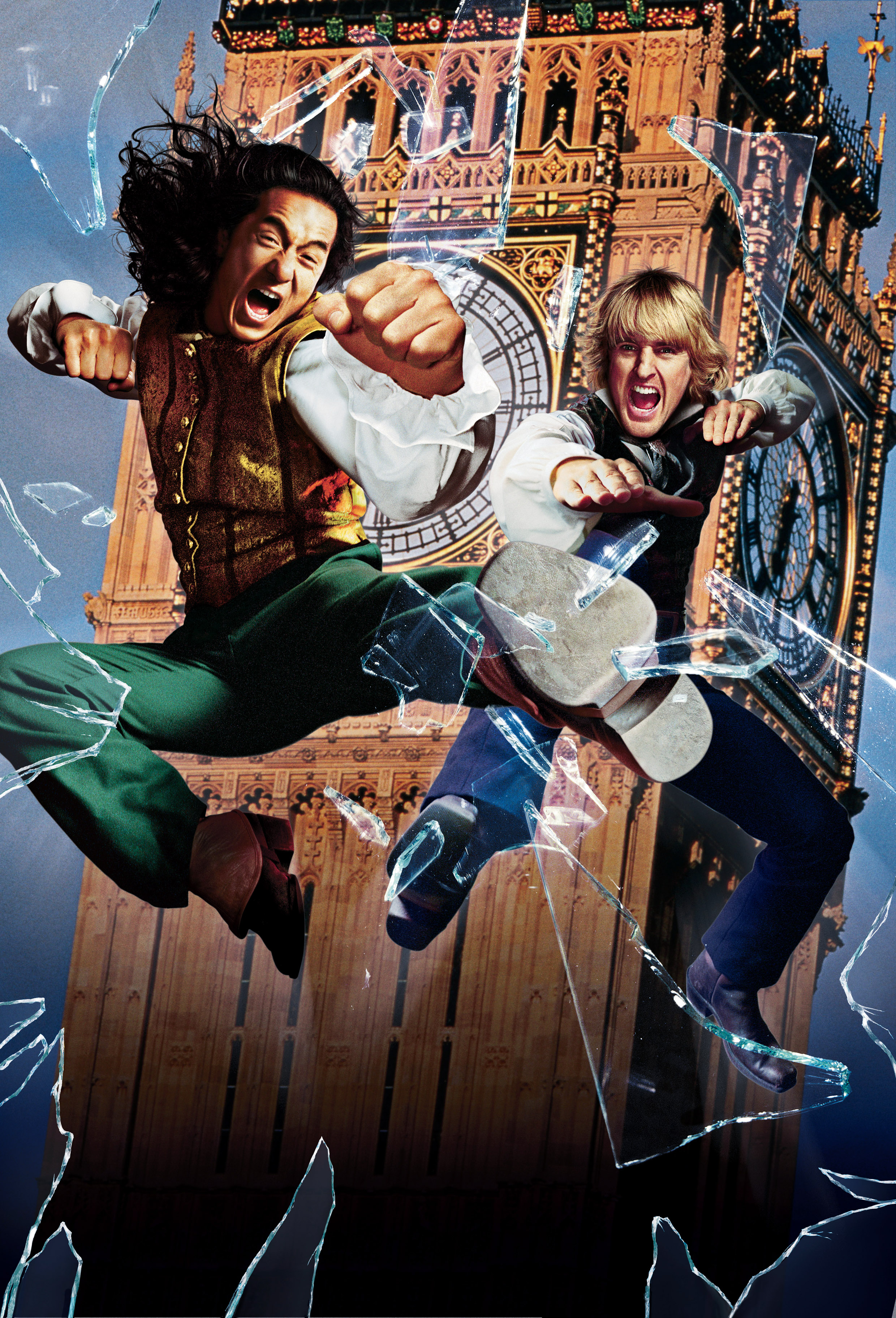 Джеки в этом фильме не продемонстрировал запредельных трюков, сделав свои кульбиты по-большей части юморными. Драка с полицейскими между крутящимися дверьми, как дань творчеству Чаплина, разборка с бандитами на рынке и последующее попадание в гробик, фехтование в башне с часами и, внимание, визитная карточка Чана — падение с большой высоты. На этот раз атрибутом спасения выступил британский флаг, направивший Джона и Роя прямиком в карету к самой королеве. Уилсон, к слову, в этом фильме раскрылся даже не на 100, а на все 200%, прыгнув выше головы и переплюнув самого себя из первой части. Оуэн всегда был отличным комедийным актером, несмотря на то, что частенько снимался в откровенной лаже. Роль Роя О`Бэннона позволила ему полной мере раскрыть свой талант. В первом фильме он готовил площадку, сохраняя толику серьезности, а во втором окончательно предстал перед нами эдаким американским Франсуа Перреном — милым и обаятельным чудаком, сыплющим остроты направо и налево. Из фраз Роя вполне можно создать книгу, тираж которой не уступил бы пресловутой писанине Серджа МакАлистера о битве Роя с мумиями. Философствование о смысле жизни на часах, разглагольствование в особняке, откровенное издевательство над Холмсом и троллинг Стоунхенджа — персонаж Уилсона в одиночку и разносит всю английскую историю, при этом делая это ярко, броско и, подчеркну еще раз, совершенно беззлобно.