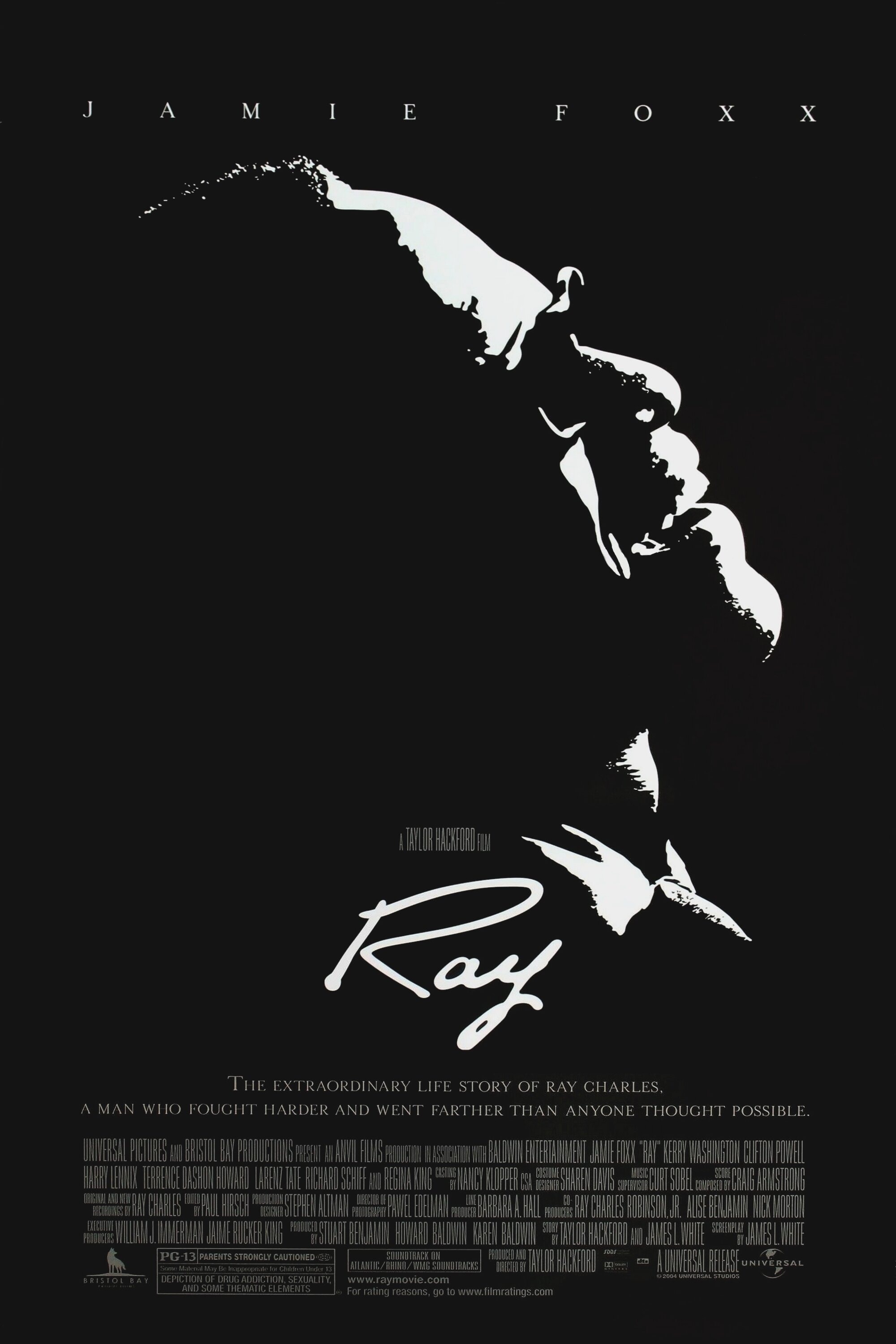 Вот я и хочу поговорить про такой фильм, а именно «Рэй/Ray» 2004 года выпуска. Режиссер фильма Тейлор Хэкфорд, известен так же по «Адвокату дьявола\The Devil’s Advocate» 1997 года выпуска.