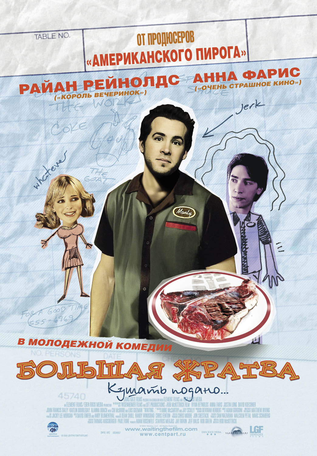 Существует два фильма под названием “Большая жратва”. Классика от легендарного Марко Феррери (мой любимчик) и данная американская комедия с Райаном Рейнольдсом. Почему так получилось? Во всем виноваты наши локализаторы, естественно. В оригинале кино называется банально “Waiting”.