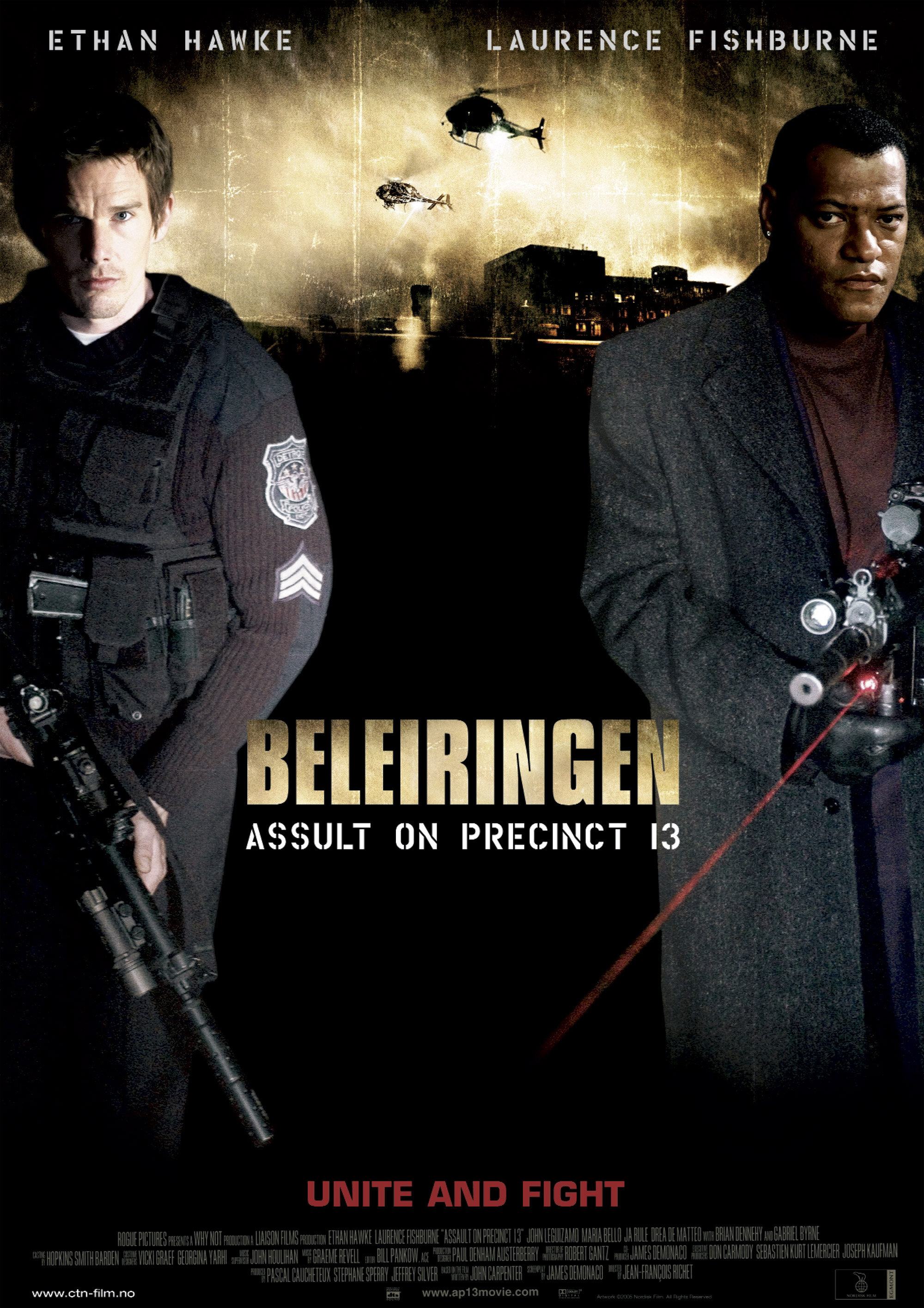{«Нападение На 13-й Участок» — это римейк фильма Джона Карпентера, аж 1976 года выпуска. В главных ролях Итан Хоук («Гаттака», «Игры Дьявола») и Лоуренс «Морфиус» Фишберн.}