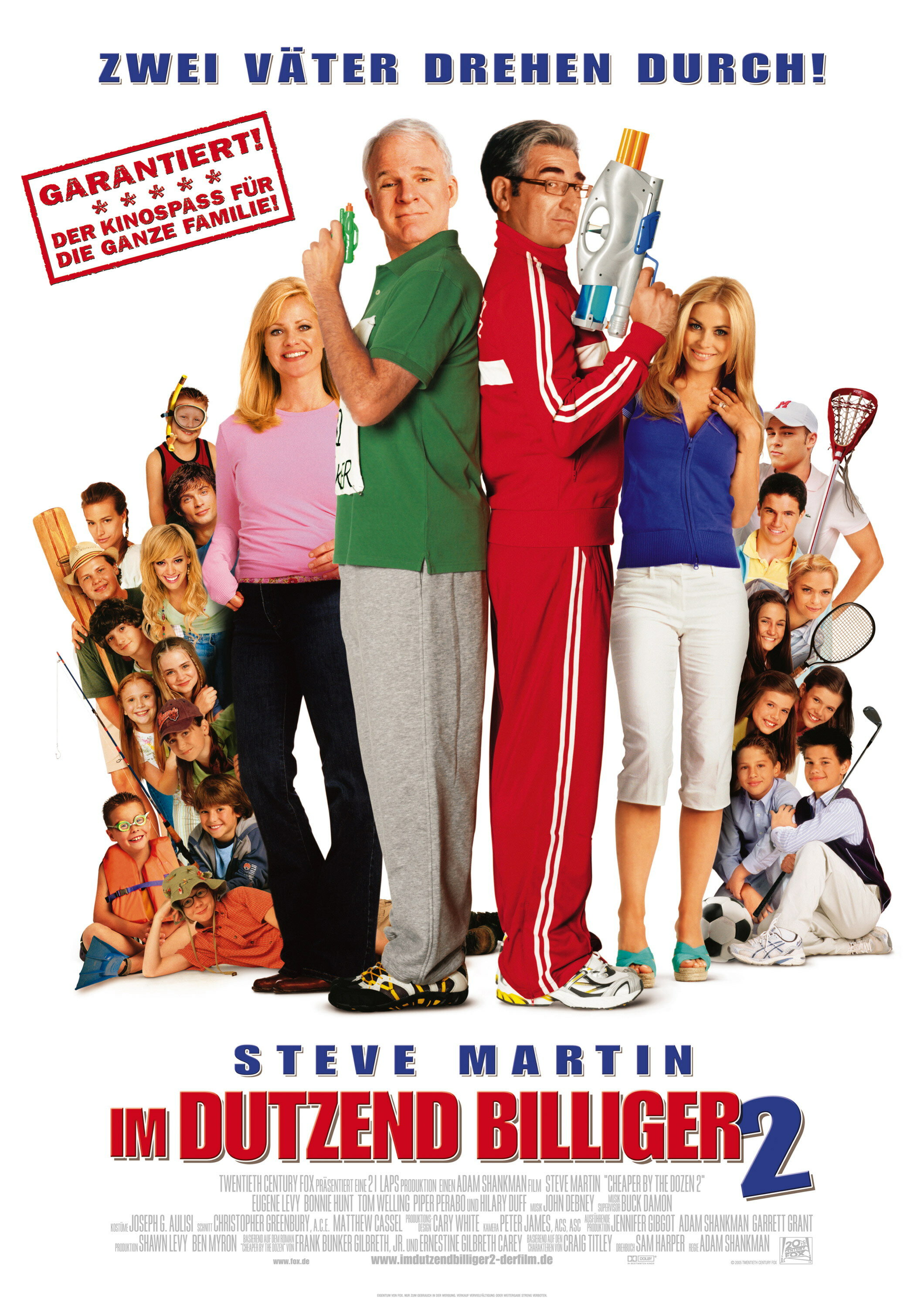 Актеры. Актерский состав во второй части решили утяжелить. К отличному комику Стиву Мартину в пару добавили столь же замечательного комедийного актера Юджина Леви. Противостояния лучше этого нельзя и представить, так как действительно трудно выделить лучшего из них двоих. В жены Юджин взял себе обворожительную Кармен Электру, внесшую в фильм сексуальность, которой не хватало в первой части. Тэйлор Лотнер, сыгравший сына Джимма Мёрто, очень развеселил. Сыгравший во всем известной саге оборотня, он очень забавный в роли маленького ребенка. С 2005 года он очень сильно возмужал, но в 13-летнем возрасте Тэйлор смотрится очень смешно! Хилари Дафф тоже резко подросла за 2 года, превратившись из маленькой девочки во вполне милую молодую особу.