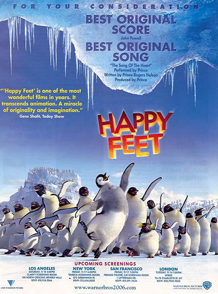 Арктический вариант «Гадкого утенка». Типичная американская история: едва родившись, отважный Мамбл открыл в себе дар танцора, стал аутсайдером и влюбился в королеву школы. В принципе, с годами в его жизни мало что изменилось: та же чечетка, та же красотка, то же «лузерство»… В чем же режиссерская задумка, спросите вы? Мамбл — пингвин, и все приключения происходят в полярных льдах.