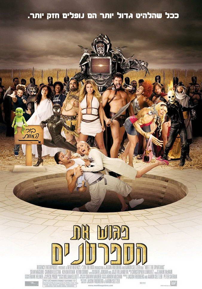 Итак, давайте познакомимся с его самой известной пародией на фильм Зака Снайдера «300 спартанцев» -» Знакомство со спартанцами». Фильм, к удивлению, делает пародию не только на фильм Зака Снайдера, но и на различные кинофраншизы того года(Рокки, Рэмбо, Человек-паук, Призрачный гонщик и др.), Компьютерные игры(GTA) и звёзд Голливуда. Хочу заметить, что» Знакомство со спартанцами» отлично обыграло и SLOW MOTION в одном из финальных сражений, и рекламу в фильмах (порой делая рекламу и в самом фильме). Да и сами спецэффекты с окружающим миром не далеко ушли от оригинала.