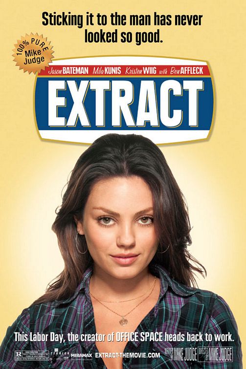Возникает такое чувство, что авторы семейной комедии с элементами мелодрамы и криминала 'Экстракт', которая вышла на экраны в 2009-ом году, стала предпринятой попыткой повторить коммерческий успех летнего хита 'В пролёте', который вышел годом ранее и стал весьма коммерчески выгодным. Дело в том, что сыгравшие в 'В пролёте' Джэйсон Бэйтман, Мила Кунис и Кристен Уиг (хоть она и не была указана в титрах) дружно перекочевали на съёмочную площадку 'Экстракта'. А вообще по мнению некоторых авторитетных критиков именно 2009-й год стал началом прорыва в большом кинематографе для Милы Кунис, когда многие начали отмечать её выразительную игру. К тому же Мила Кунис, по её собственным словам, была поклонницей первого полнометражного художественного фильма режиссёра Майка Джаджа 'Офисное пространство' (1999), получившего в узких кругах культовый статус. И как раз Майк Джадж и стал постановщиком 'Экстракта'. Но наиболее он известен тем, что стал главным создателем известнейшего мультсериала 'Бивис и Баттхед', долгое время выходящего на канале 'MTV'.