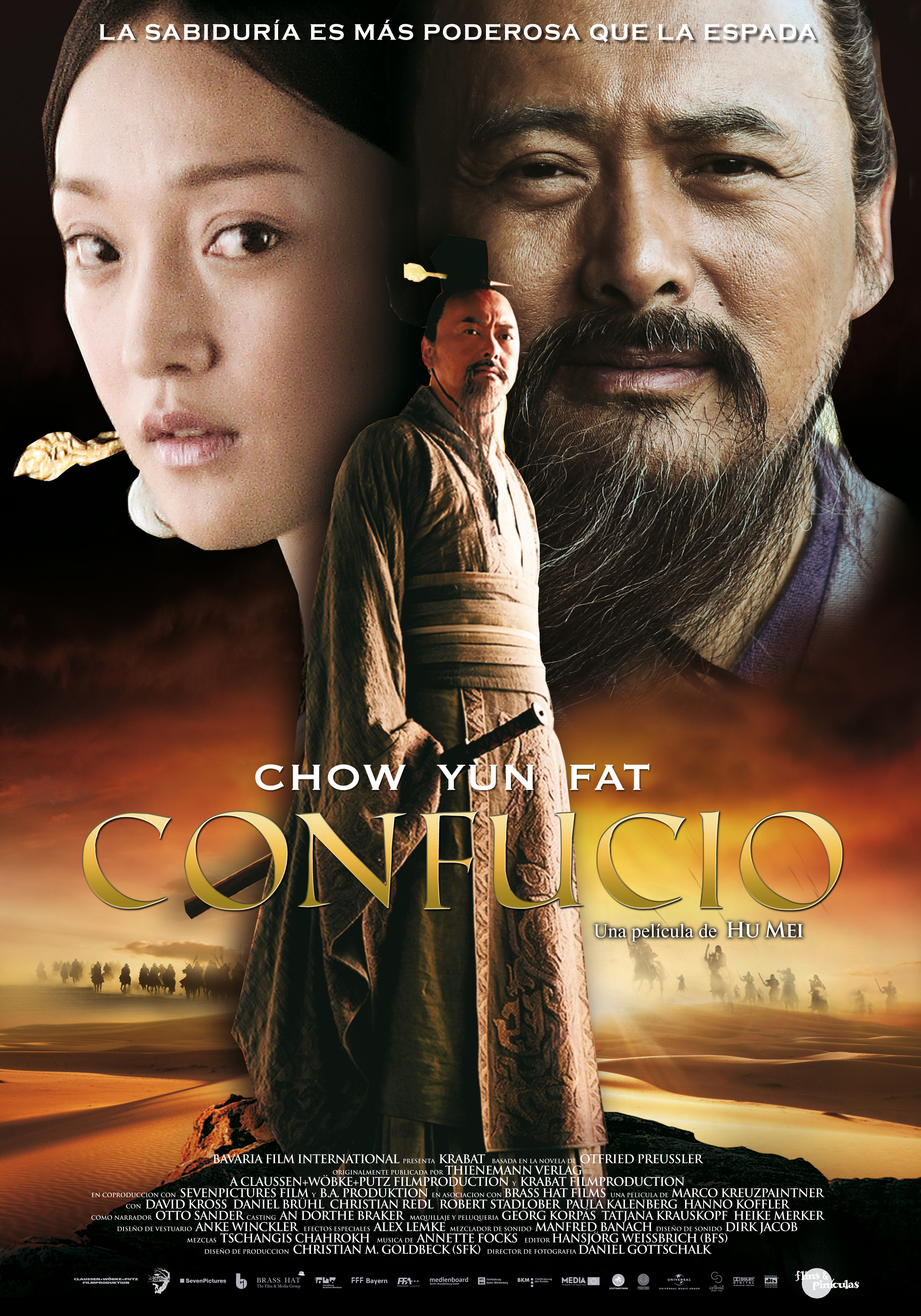 Актерские работы. Каждый из актеров был убедителен в своих ролях. Но отмечу Чоу Юнь Фата в роли Конфуция. Его актёрское амплуа наполнено самыми разными образами и типажами. Но мудрецы и философы у него проскакивали даже в самых ранних боевиках. Для себя его открыл после роли в фильме «Пуленепробиааемый монах». В этой роли он нашел себя. Как мне кажется, как на западе каждый мужчина мечтает сыграть Гамлета, так и здесь каждый актер хочет прикоснуться к образу Конфуция. В нашем дубляже звучит голосом Василия Дахненко. Все остальные актёры также показали хорошую игру. Чэнь Цзяньбинь сыграл Джи Сунси. Это воин благородных кровей, но междоусобицы между королевствами превращают даже самых благородных людей в алчущих власти прохиндеев. Каждый хочет не только сохранить свою сферу влияния, но и отобрать земли у других. Чжоу Сюнь сыграла Нанзи. Насколько мне удалось понять, она может стать управленцем, но тогда крепко сидело предубеждение, что женщина не сможет править государством. В нашем дубляже говорит голосом Любови Германовой, много озвучивавшей разных правительниц.