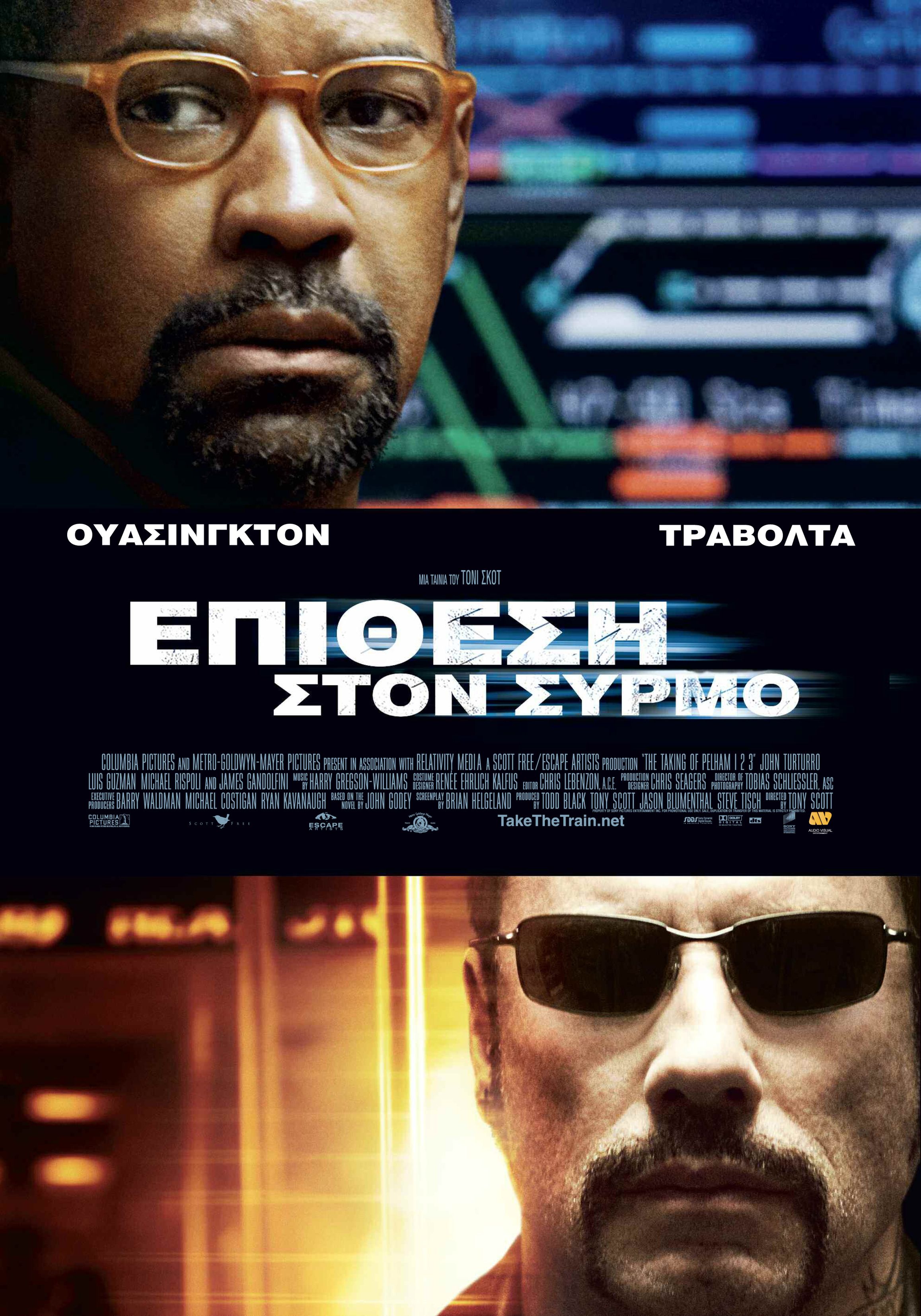 Ремейк одноименного фильма 1974 года рассказывает о захвате заложников в поезде метро и попытке служащего подземки противостоять опасным пассажирам. При этом, вожак террористов, человек называющих себя Райдером (Джон Траволта) позиционирует себя не как террорист, а как человек, перед которым у правительства есть долги за его злоключения. Главный положительный персонаж Гарбер (Дэнзел Вашингтон) выступает простым работягой, обычным парнем из народа, который, например, не задумываясь бросится спасать утопающего. Что касается Дэнзела — ему вообще свойственны такие роли. Вспомнить хотя бы «Неуправляемого», где они играет машиниста поезда или «Джона Кью», где он, если не изменяет память, выступает в роли шахтера.