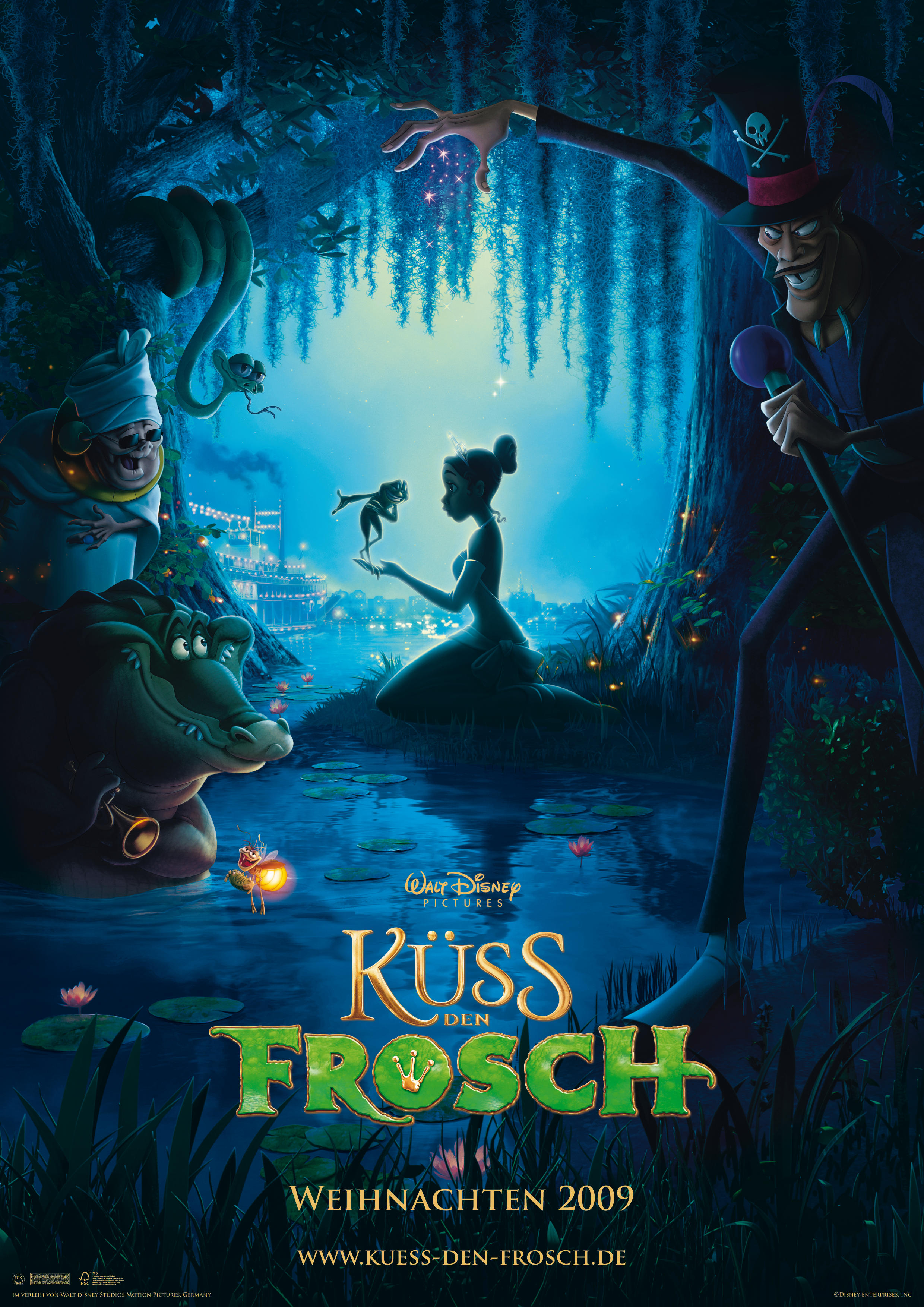 Известная сказка Братьев Гримм, о которой можно подумать из названия мультфильма, отношения к сюжету практически не имеет (за исключением заколдованного принца, разумеется). И этот факт, признаюсь, привлек мое внимание к этой картине. Талантливый, собственноручный, здорово написанный сценарий наряду с замечательной работой художников в традициях Disney — это веские причины, по крайней мере, посмотреть «Принцессу и лягушку». И, конечно же саундтрек, не оставшийся не замеченным киноакадемией — сразу 2 номинации на «Оскар» за «Лучшую песню». Замечательная музыка Рэнди Ньюмана, как всегда грамотно дополняет общее настроение, а местами даже является частью повествования.