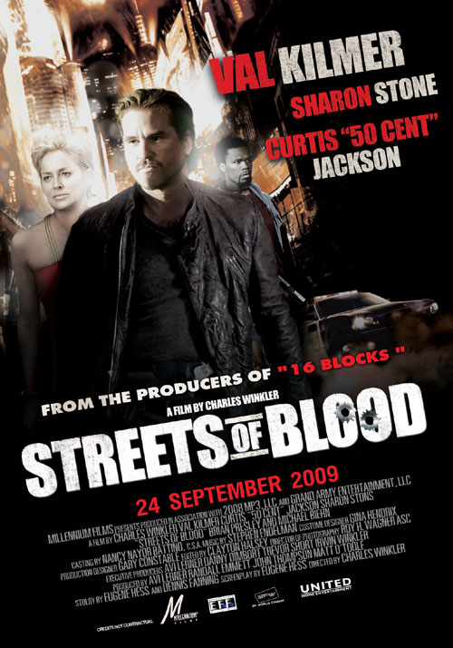 «Улицы крови» — боевик, где ставка далалась на Вэла Килмера, Шерон Стоун и Майкла Бина; участие очень популярного рэпера 50 cent; реальность в происходящем. И вроде бы и ставки сработали, и показано все без купюр, и подходящая музыка Стивена Эндельмена присутствует, но поставить оценку выше пятерки просто не поднимается рука.