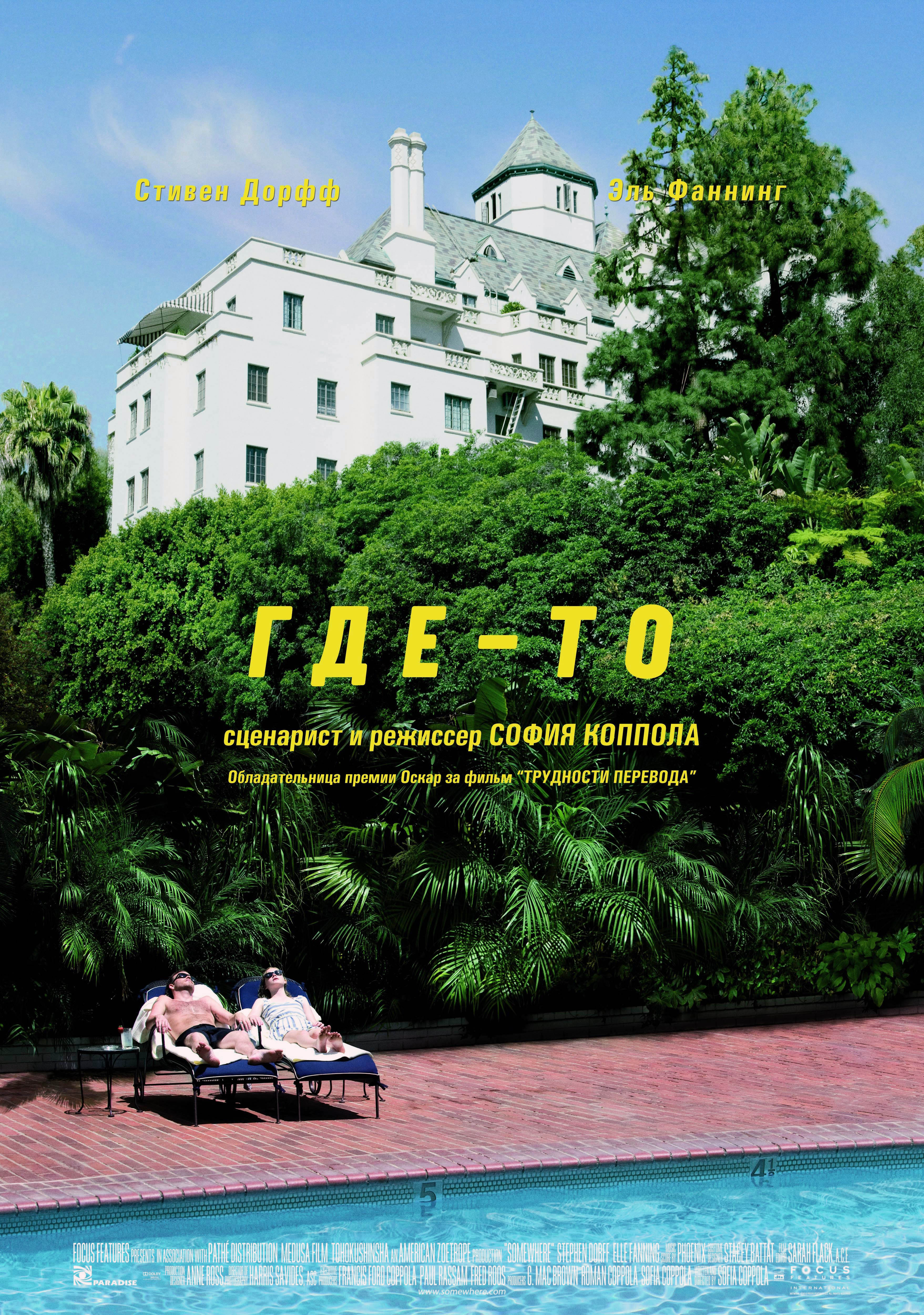 Я считаю, что этот фильм не многим хуже гениальных в своей экспрессии «Трудностей перевода». «Где-то» лучше смотреть в определенном состоянии и в определенный жизненный этап. Тогда, скорее всего, он срезонирует и попадёт туда, куда нужно. Прочувствуйте это кино.