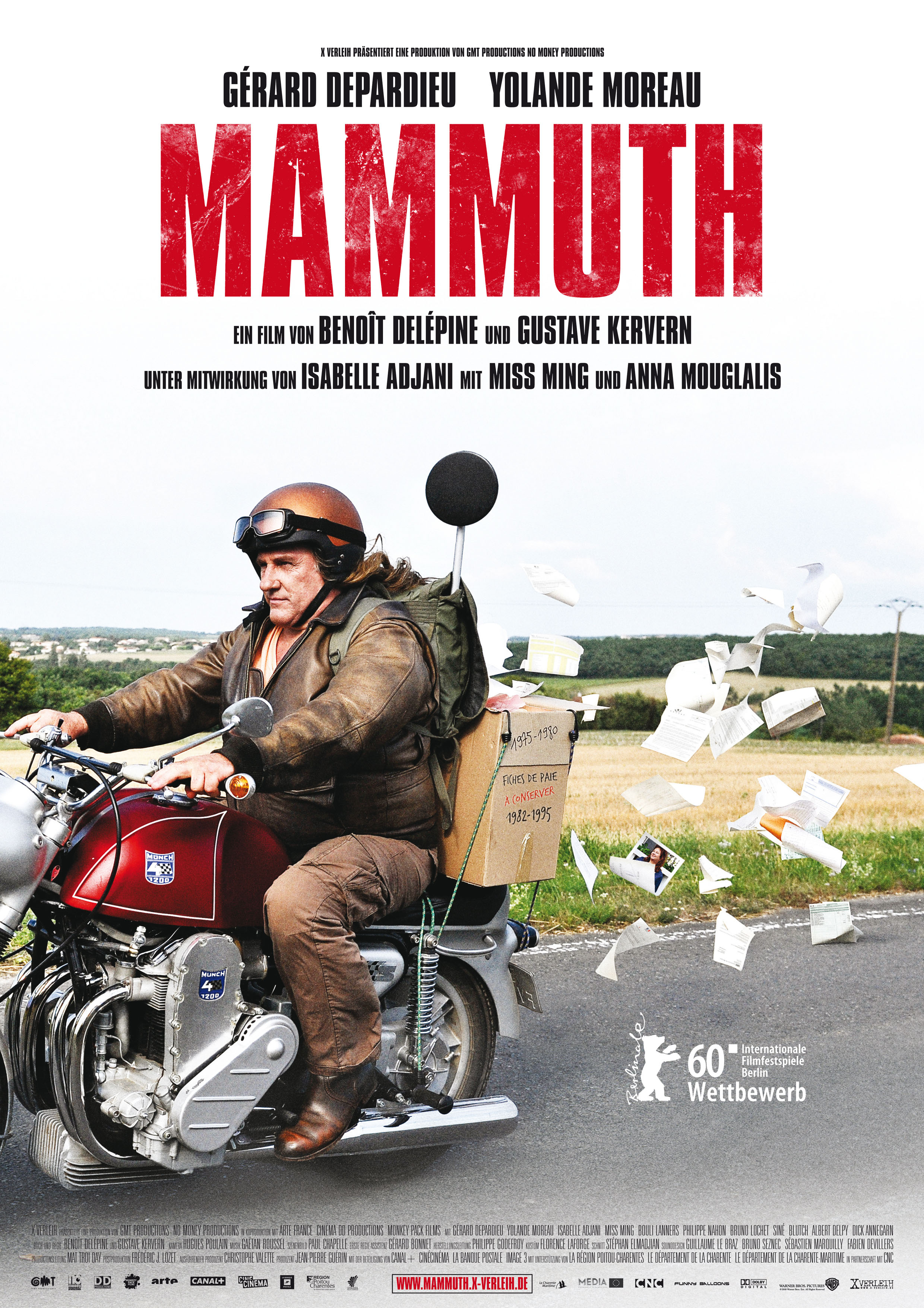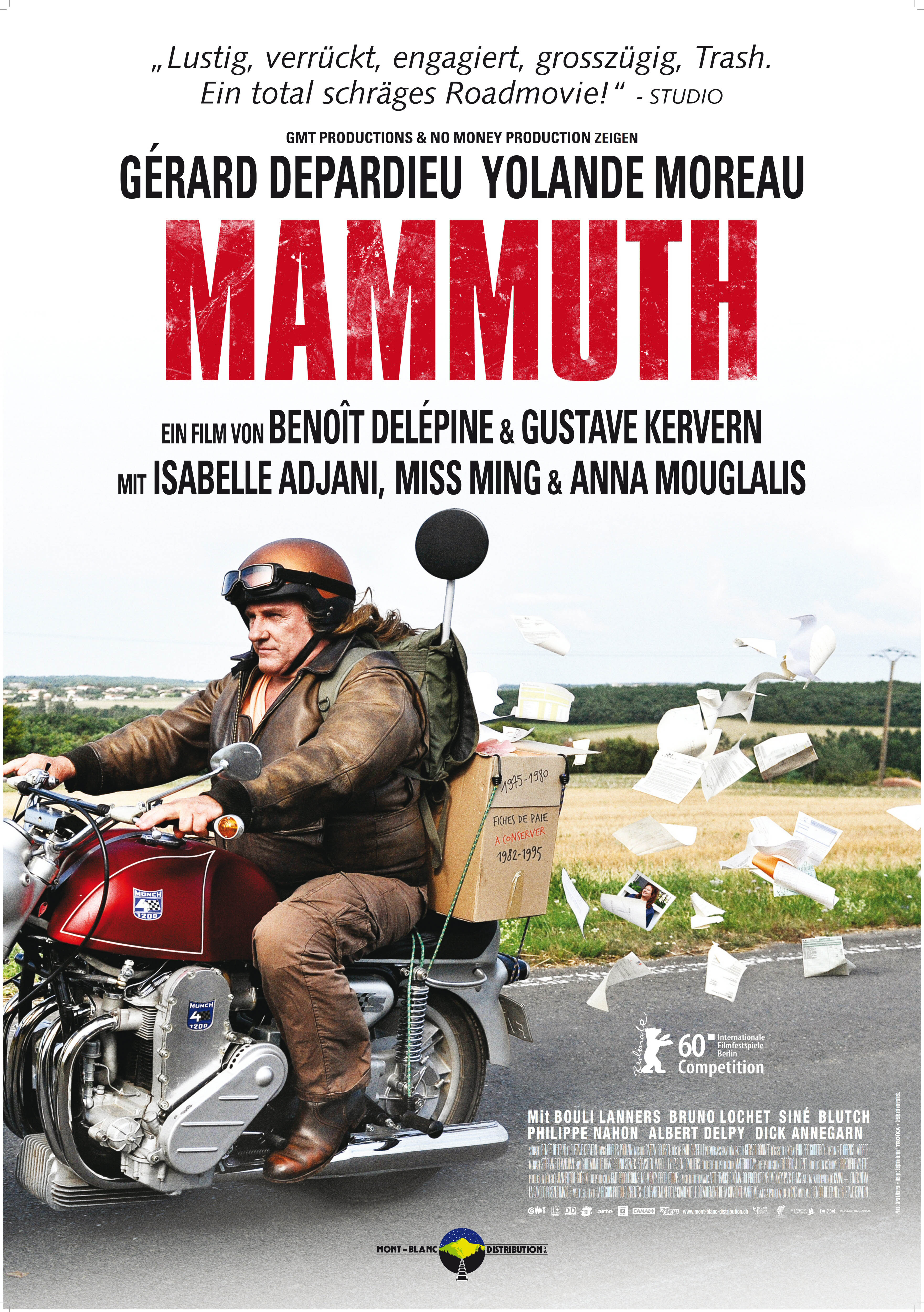 Центральный герой — старый, толстый Депардье со все еще роскошной шевелюрой неформала, празднует шестидесятилетие и оказывается отправленным на пенсию. Без работы он не может найти себе место, ибо туповат и косорук, находит отдушину в том что ходит в соседний супермаркет и ругается с продавцом колбасы, тем самым компрометируя жену, работающую там же. При оформлении пенсии оказывается, что часть работодателей не стали себя утруждать официальной информацией о его стаже и для того, чтобы получить нормальную пенсию ему нужно получить автографы работодателей двадцать лет спустя. Серж, имеющий кличку мамонт, отправляется в путь. На одноименном мотоцикле 70 года выпуска. Фабула сюжета на мой вкус перекликается со «Сломанными цветами» Джармуша. Но герой Депардье далеко не так глубок, как отправившийся в аналогичное путешествие герой Билла Мюррея. Его не мучают философские вопросы, да и нет у него идеи найти когда то значимых женщин — он ищет бумаги и его путешествие превращается в такой подростковый аттракцион, в котором шестидесятилетний грузный человек ведет себя как когда-то в молодости, оперативно реагируя на проходящие события, не выискивая дополнительных смыслов и не страдая от рефлексии. Поведение Сержа можно описать двумя словами — стимул — реакция. Он огромен, недальновиден, несуразен, нелеп. Наличие физиологичного французского юмора меня, как зрителя не порадовало. Не то чтобы я осуждала сцены с испражнениями в лунки для игры в гольф, или взаимной мастурбации двумя уже немолодыми пенсионерами. Да и Депардье актер, любящий физиологические откровения. Но кино я досмотрела до конца с долей брезгливости, где-то сочувствуя герою, где-то поражаясь его тупости.
