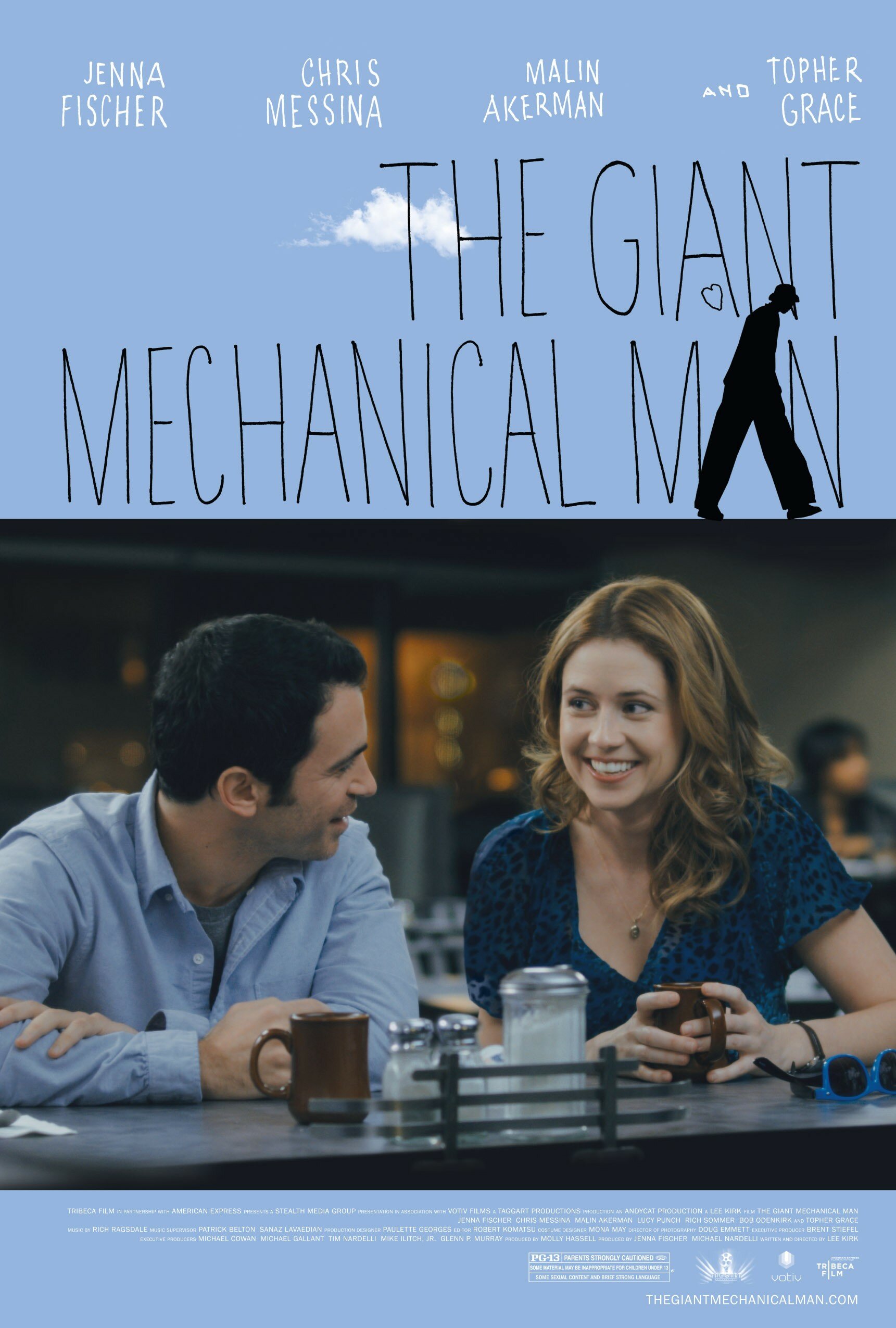 Вряд ли кому-то скажет что-то имя Ли Кирка. Он по чуть-чуть занимался продюсированием, появлялся в сериалах в качестве актёра, писал редкие сценарии, но вот оказался и в качестве режиссёра, сняв полудраматический фильм «Гигантский механический человек». Почему полудраматический? Потому что до мелодрамы он не дорос, из него выжимали депрессивную комедию, а оказался ближе к драме, так как повествует про жизнь двух замкнутых людей, сварившихся в мегаполисе, считая себя одинокими сердцами. Только подход к драме был не прямолинейным, а будто сбоку, а при условии несколько оптимистичного финала, то до полного отображения драмы в её кинематографическом условии не доходит.