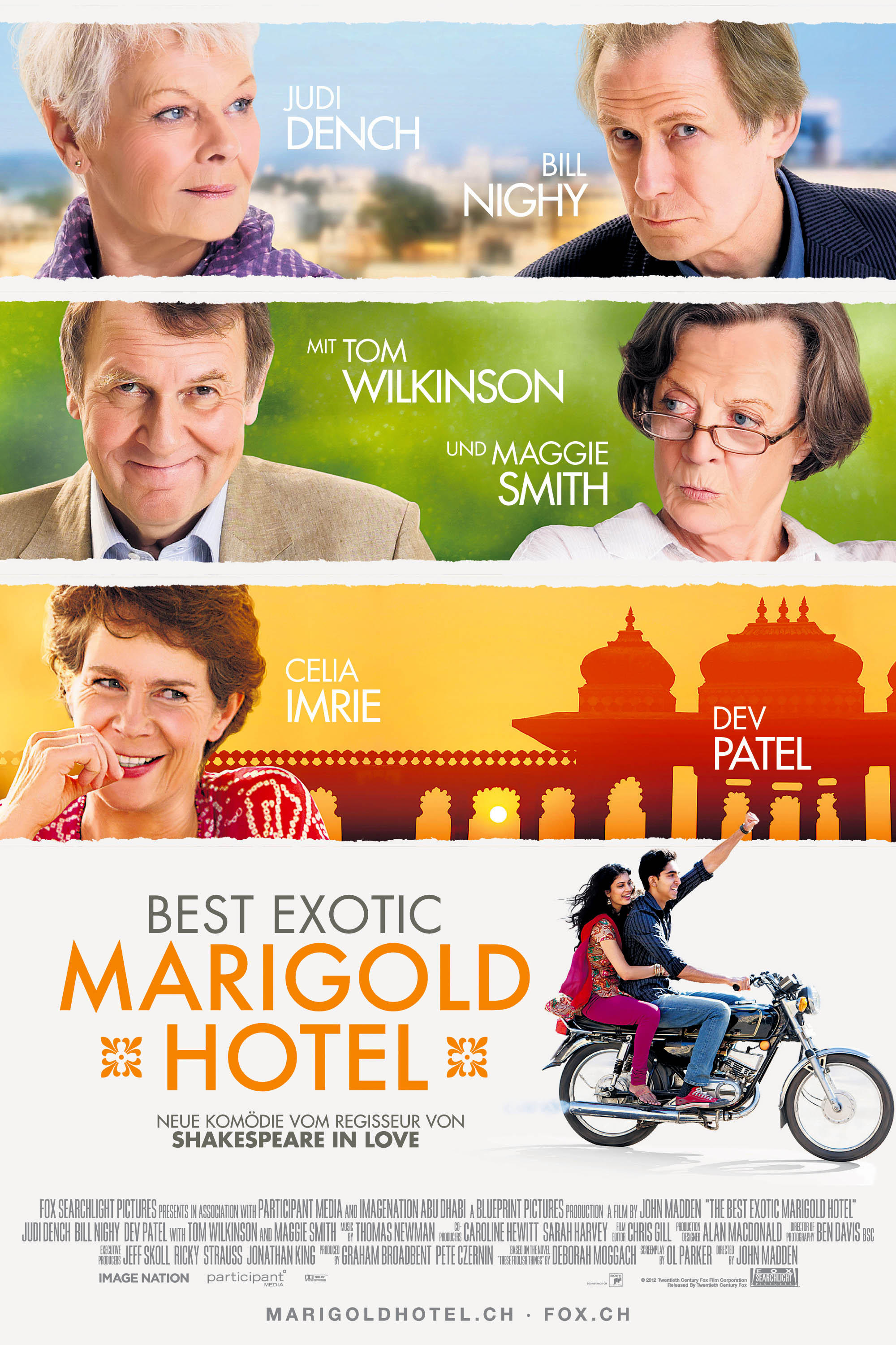 Вот почему можно смело сказать, что «Отель «Мэриголд» — первая по-настоящему удачная работа режиссера за последние десять с лишним лет. Как в плане финансовом (скромный бюджет в 10 млн. долл. окупился в мировом прокате тринадцать раз), так и в части зрительского восприятия. В кои-то веки Мэддену удалось найти разумный баланс драмы, мелодрамы и комедии («Я стараюсь не планировать на перспективу. Я даже зеленые бананы не покупаю»). Само собой, местный индийский колорит, а лента снималась на локации в Джайпуре, отразился на соотношении сторон. Местами проглядывают уши чисто болливудской сентиментальности, но это компенсируется отличной актерской игрой английских исполнителей высочайшего уровня — Джуди Денч, Билла Найи, Тома Уилкинсона и Мэгги Смит.