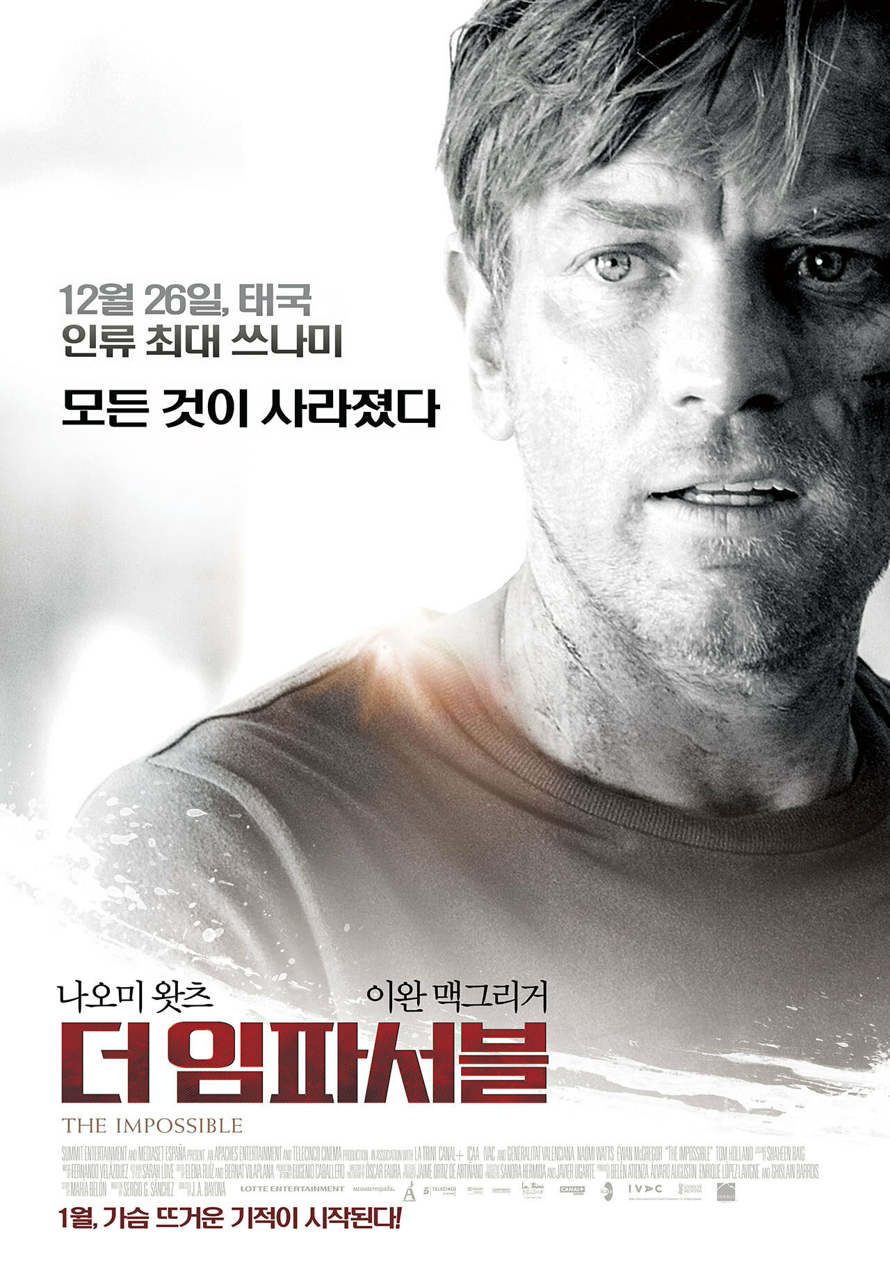 Долгое время откладывал этот фильм в сторону, так как предполагал что это типичная картина производства США рассказывающая нам о катастрофе унесшей множество жизней и плюс с второстепенной любовной веткой сюжета. Тут то и была моя большая ошибка, решив почитать об этом фильме поподробней я обнаружил для себя что фильм основан на реальных событиях, но что поразило меня очень глубоко так это команда людей работавшая над картиной и удивления моему не было придела. Страна производитель — Испания. Сценарий — Серхио Х. Санчес (Испанец) Режиссер — Х. А. Байона (Испанец)! да вся съемочная группа испанцы! За исключением конечно актеров, но тут с точки зрения режиссера и скорее всего сценариста правильный ход. Естественно такие великолепные актеры как Наоми Уоттс и Юэн МакГрегор вовлеченные в проект значительны повысили рейтинг и спрос на картину. Подтверждению успеха фильма в прокате говорят нам сборы фильма в 198 000 000$.