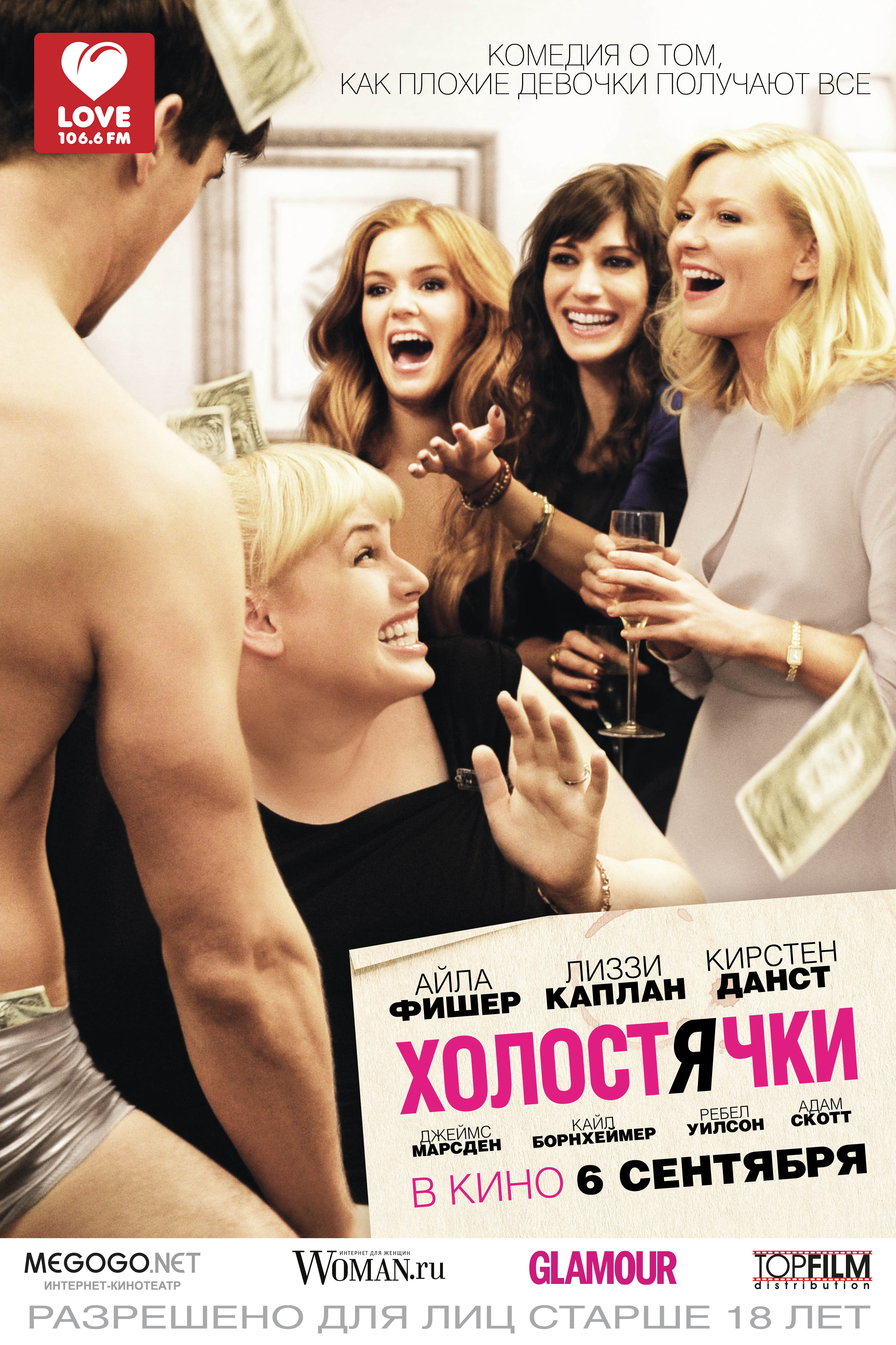Еще одно творение на столь популярную у американцев тему мальчишников/девичников. Только теперь в отрыв уходят не холостяки, а холостячки, как можно догадаться из названия. Из мильена подобных фильмов этот выделяется… да ничем он не выделяется. Разве что россыпью именитых фамилий в титрах. Здесь и Кирстен Данст, и Лиззи Каплан, и Айла Фишер, и Джеймс Марсден. Милая толстушка Ребел Уилсон предстает в совершенно несвойственном ей образе — не разбитной девицы, а затюканной скромняшки. И он, образ этот, совершенно ей не идет.