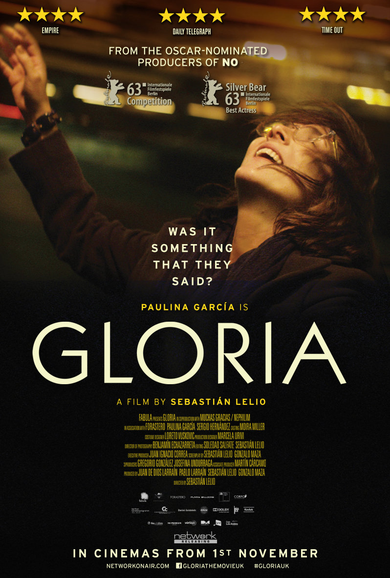 Не очень известный чилийский режиссер Себастьян Лелио совместно с актрисой солидного возраста, но небольшого послужного списка Паулиной Гарсиа сделали фильм о проблемах социально и духовно неустроенной дамы, и попали в конкурс Берлинского фестиваля 2013-го года. Большого зрительского резонанса картина не получила, но, что безусловно удалось сделать постановщикам «Глории», так это скомпилировать отличный саундтрек из латино-американской музыки.