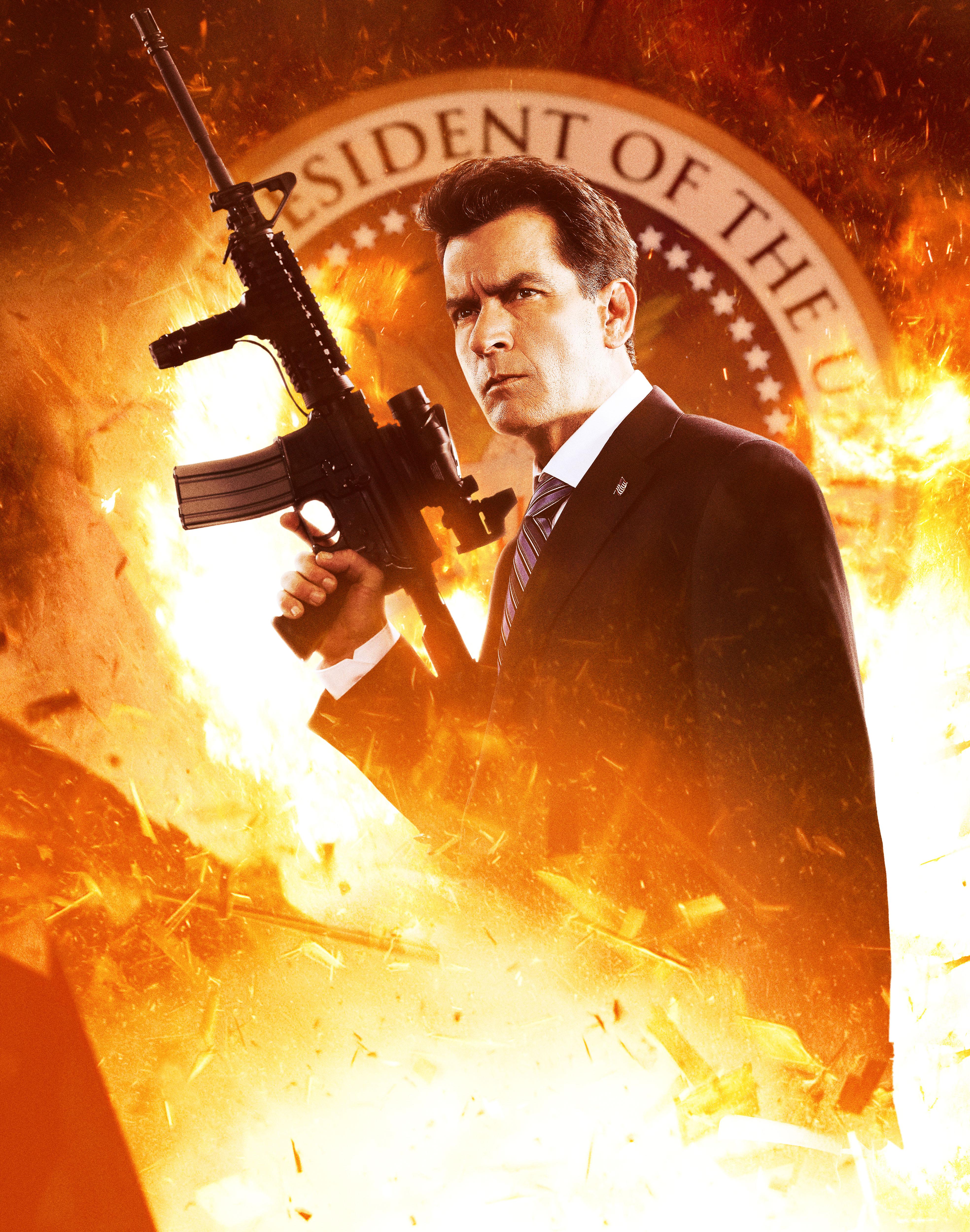 Что делать во второй части, когда уже первая была апофеозом ереси (кишки-тарзанка)? Правильно, золотой стандарт Z, надо продолжать сходить с ума. «Я и сам парень конкретный» — говорит Чарли Шин. Блин, мужик играет президента США! Готов аплодировать стоя. Еще написали под настоящим именем — Карлос Эстевес, а-ха-ха.