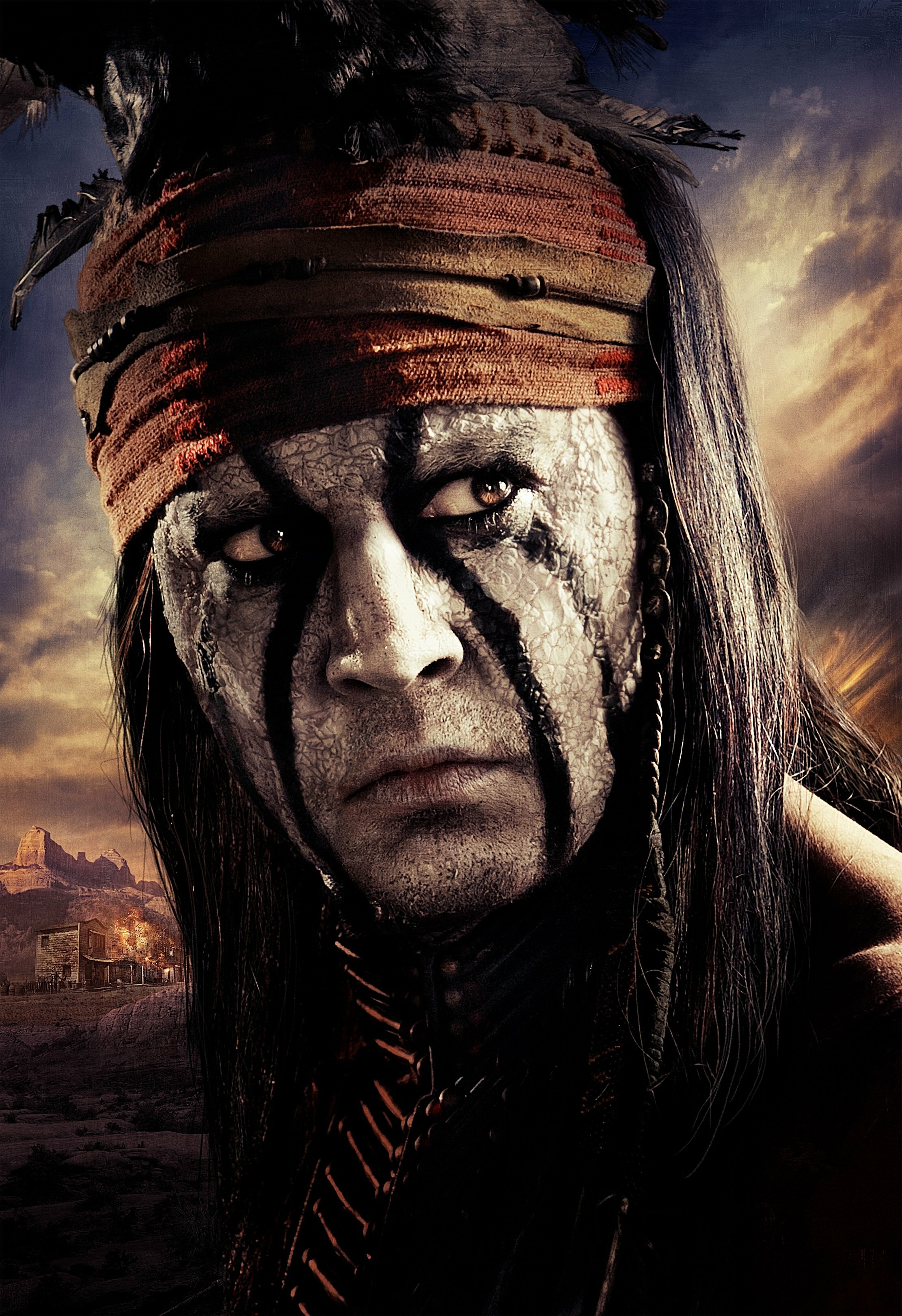 Депп в почти немом чаплиновском образе индейца, здесь уже совсем близок к сравнению с цирковым клоуном. Грим грустного клоуна на лице, чучело птицы на голове, еще бы красный нос и Дю Солей отдыхает. Но фокус весть в том, что именно этот «Депп в образе» стал одним из ярчайших кинообразов современного кинематографа. И речь не только о Тонто или о Джеке Воробье, но и о других схожих, по сути, ролях актера.