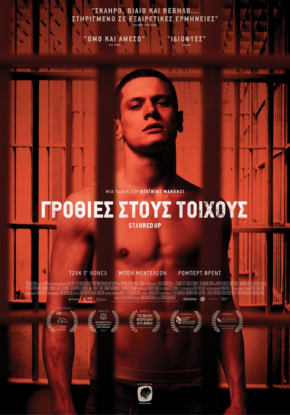 Для Джека О’Коннэла «Starred Up» стал первым полнометражным фильмом после окончания его карьеры в сериале «Skins» (подарившем кинематографу не только Джека, но и целую плеяду bright young things включая Николаса Холта, Эйми-Ффион Эдвардс, Джо Дэмпси и др.), но пресса назначила героем дня и многообещающим дебютантом не О’Коннэла, а Ассера, подарив ему множество престижных номинаций и премий, а также целых пять сценарных проектов для разработки. Но это не отменяет заслуг Джека, выдающего исполнение такого качества, о каком многие мэтры могут только мечтать. Вторую скрипку в «Starred Up» играет Бен Мэндельсон, без которого современное кино представить просто невозможно, вряд ли найдется такой зритель, что хотя бы раз не видел Бена на экране, будь то сериалы BBC или блокбастер Ридли Скотта.