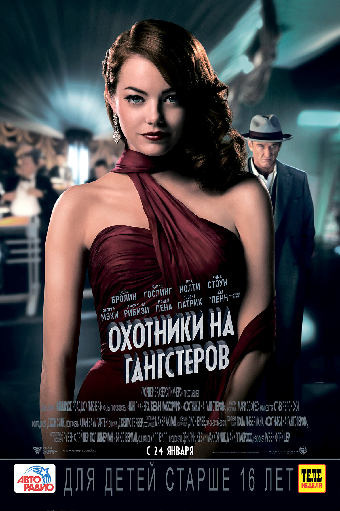 Актеры. Актерский состав этой ленты пестрит настоящими звездами: Джош Бролин, Райан Гослинг, Шон Пенн, Эмма Стоун и многие другие. Все как могут тащат фильм. Особенно крут в этом фильме Шон Пенн, которому очень подходит образ гангстера. Но и остальные актеры тоже хороши. Джош Бролин и Райан Гослинг жарят харизмой, а Эмме Стоун хорошо подходит образ роковой девушки.