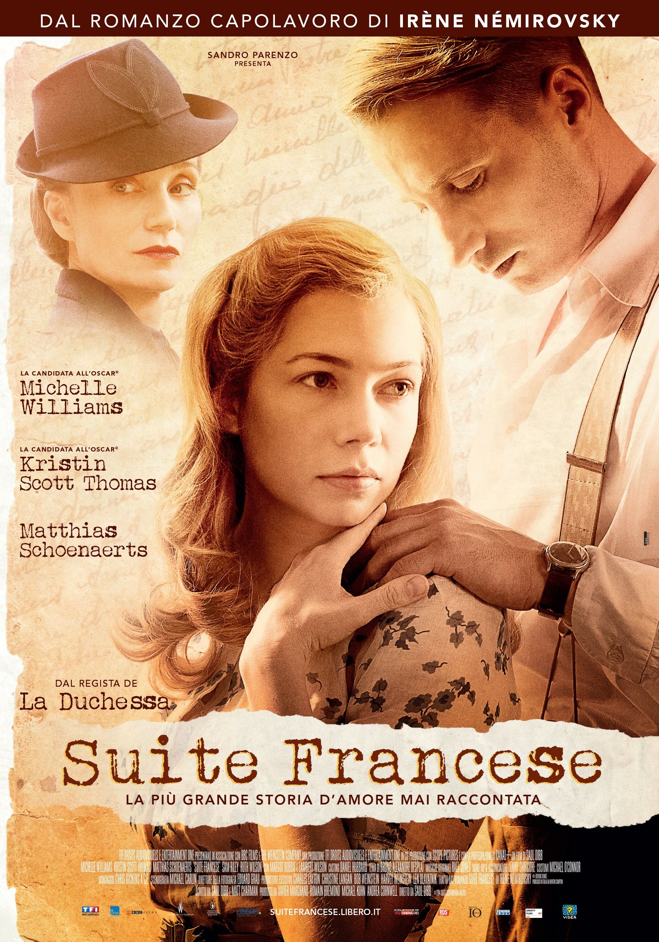 Мишель Уильямс в роли Люсиль просто блистательна. Ее чарующая внешность — полная оппозиция всем героиням глянцевых обложек, являющая собой ту женственность и естественность без искусственного лоска, что в своей чувственности есть истинное совершенство. Для любителей примитивизма, впрочем, в фильме присутствует Марго Робби, чья роль предсказуемо ограничивается сценой секса с немецким солдатом и несколькими фразами. В целом же каст-лист «Французской сюиты» это аристократия европейского кинематографа в лице Сэма Райли, Александры Марии Лары, Ламбера Вильсона, Тома Шиллинга, Хайно Ферха и, конечно, Маттиаса Шонартса — исполняющего роль прекрасного германского офицера.
