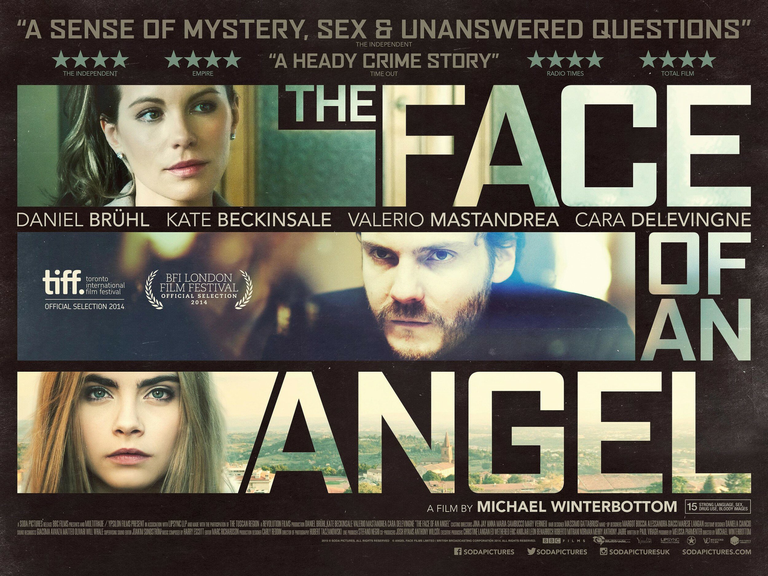 К фильмам Майкла Уинтерботтома у меня какое-то неоднозначное всегда отношение после просмотра: вроде бы хорошо, а вроде бы и не совсем. Так же получилось и с последним творением «Лицо ангела»/The Face of an Angel (2014). Начнем с того, что я купилась на трейлер, слоган и Брюля с Бекинсейл, а кто-то, наверное, еще купился и на Кару Делевинь, и ожидала совсем не то, что получила. Казалось, это будет добротный такой детектив об убийстве юной англичанки… Ан нет! Не тут-то было!