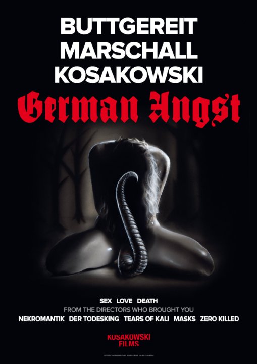 Если посмотреть на успех ряда картин, то можно смело сказать, мода на хоррор-альманахи стала достаточно активным трендом, который в век кино-модерна стал достаточно востребован. Пожалуй, для многих, во всех уголках света, одной из самых ожидаемых премьер жанра стала антология «Немецкий Страх», в которую включены три новеллы от достаточно ярких представителей жанра, вроде Йорга Буттгерайта (Некромантик 1—2, Шрамм), Андреса Маршалла (Слезы Кали, Маски) и начинающего документалиста Михала Косаковски. Как и упоминал Артур Сумароков, этот франчайз имеет явное сходство с не совсем состоявшейся «Комнатой Душ», но если нашумевший «Profane Exhibit» в какой-то мере представлял общую школу хоррора, то «German Angst» является чистым оммажем немецкому андерграунду, тем самым позволяя своим режиссерам с головой проявить себя.