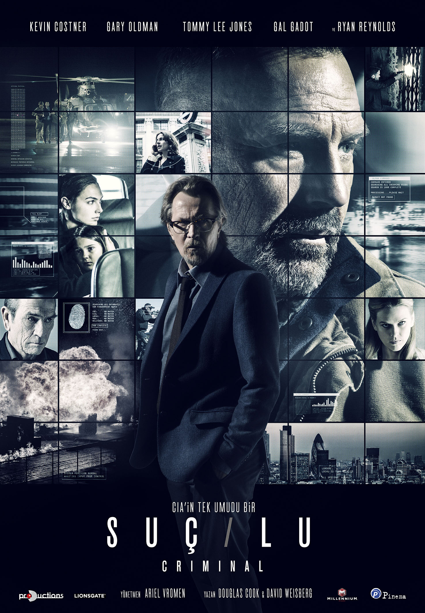 Режиссер Ариель Вромен собрал в «Преступнике» просто невероятный каст. Пожилой, но все такой же обаятельный с добрыми глазами Томми Ли Джонс, крайне востребованный и снимающийся в неплохих в последнее время фильмах Кевин Костнер, востребованный в силу молодости и внешности Райан Рейнолдс, все такой же усатый Гэри Олдман, привлекательная блондинка Элис Ив, темноволосая красотка и по совместительству восходящая звезда Голливуда Галь Гадот, а также второстепенные герои Амари Ноласко, знакомый зрителю по сериалу «Побег» и Колин Сэлмон («Обитель зла»), а также Майкл Питт и Хорди Молья.