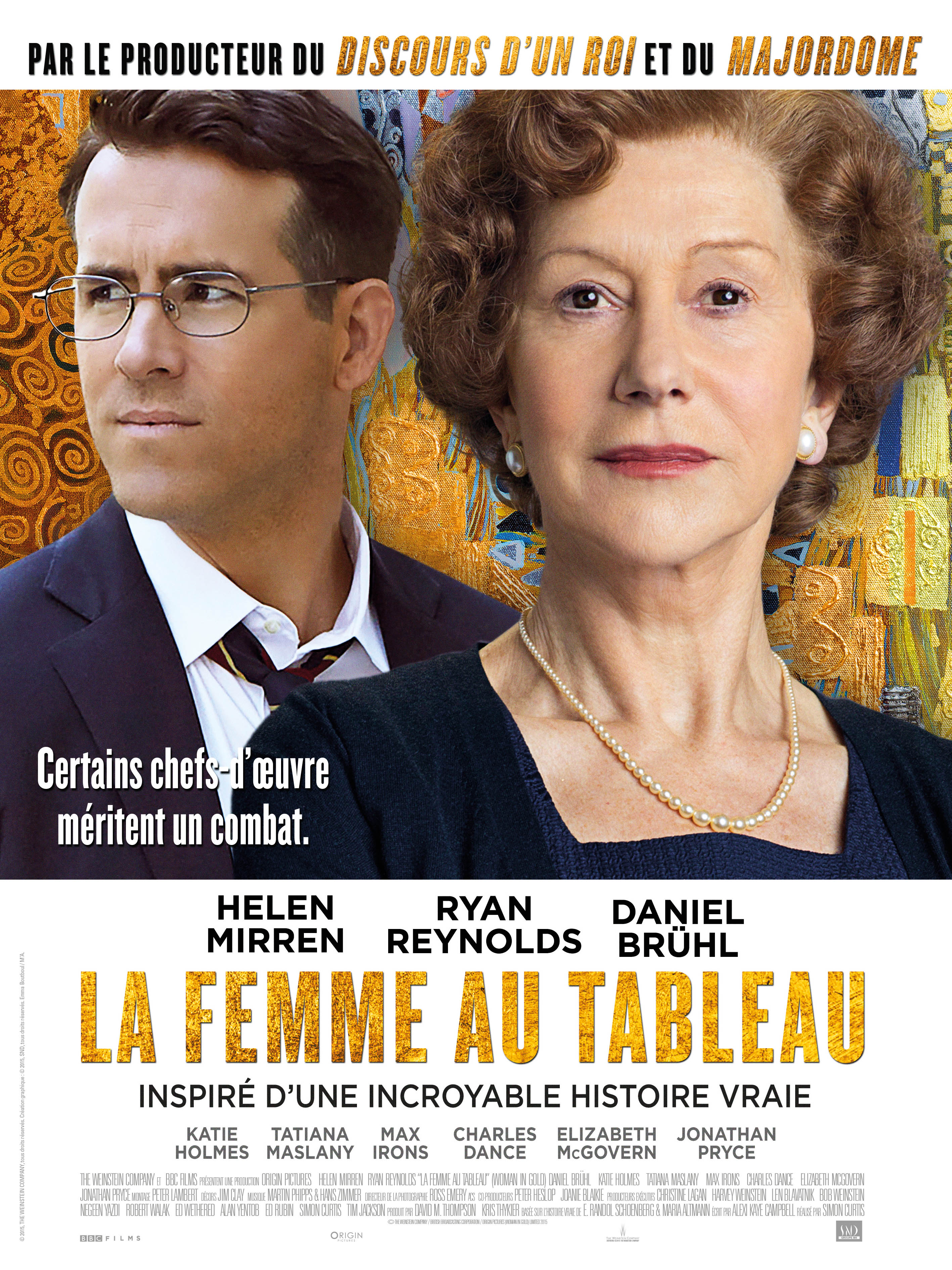 Ключевыми героями истории выступают молодой калифорнийский адвокат и пожилая мисс Альтман. История подает все судебное разбирательство не только как попытку добиться торжества справедливости, но и как взаимодействие между двумя совершенно разными поколениями людей. Когда-то эта женщина потеряла почти все, кроме мужа и собственной жизни, а спустя полвека ее молодой адвокат рискует карьерой и благополучием уже своих родных, поставив все на кон. Райан Рейнольдс неожиданно хорошо выглядит в драматическом амплуа, составляя достойную компанию своей именитой коллеге Хелен Миррен.
