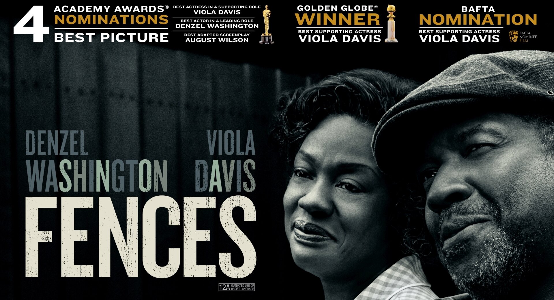 Бесспорно, что я знаю о том, что «Ограды» — это экранизация одноимённой пьесы, за которую и Дензел Вашингтон, и Виола Дэвис, и Огаст Уилсон, писавший её, получили множество самых престижных наград в театральном мире. Это во многом повлияло на то, как отточены каждые действия актёров, насколько точны и выразительны их жесты, мимика, эмоции, но ведь надо понимать, что это всё ещё нужно должным образом перенести на кинематографическое полотно и чтобы оно не стало каким-то проходным, а было достойно вершин, достигнутых театральным собратом. И четыре номинации на ежегодной премии «Оскар» (в том числе и за лучший фильм) лишнее доказательство тому, что «Ограды» не стали проходным. Правда, единственную статуэтку забрала Виола Дэвис за лучшую женскую роль второго плана, но всё же если опять сравнить «Ограды» с «Великолепной семёркой», то по пункту художественной ценности и важности я бы без колебаний выбрал бы именно «Ограды».