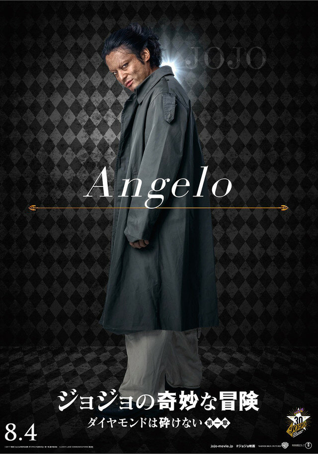 Во-вторых, стоит сказать про персонажей. Я понимаю, что трудно найти похожих актёров, но блин, зачем там играю те, кто на персонажей вообще не похож? При просмотре фильма после аниме/прочтения манги в голове появляется вопрос: «А кто этот персонаж? Почему я его не узнаю?». Джотаро, например, выглядит, как какой-то старик, хотя должен быть молодым. И уж что тут говорить про костюмы героев… Эх… Тот же Джотаро просто ходит в белом костюме, без каких либо значков, что вообще не похоже на его костюм. Костюмы остальных персонажей еще более-менее похожи, но создаётся впечатление, что это какая-то дешёвая пародия.