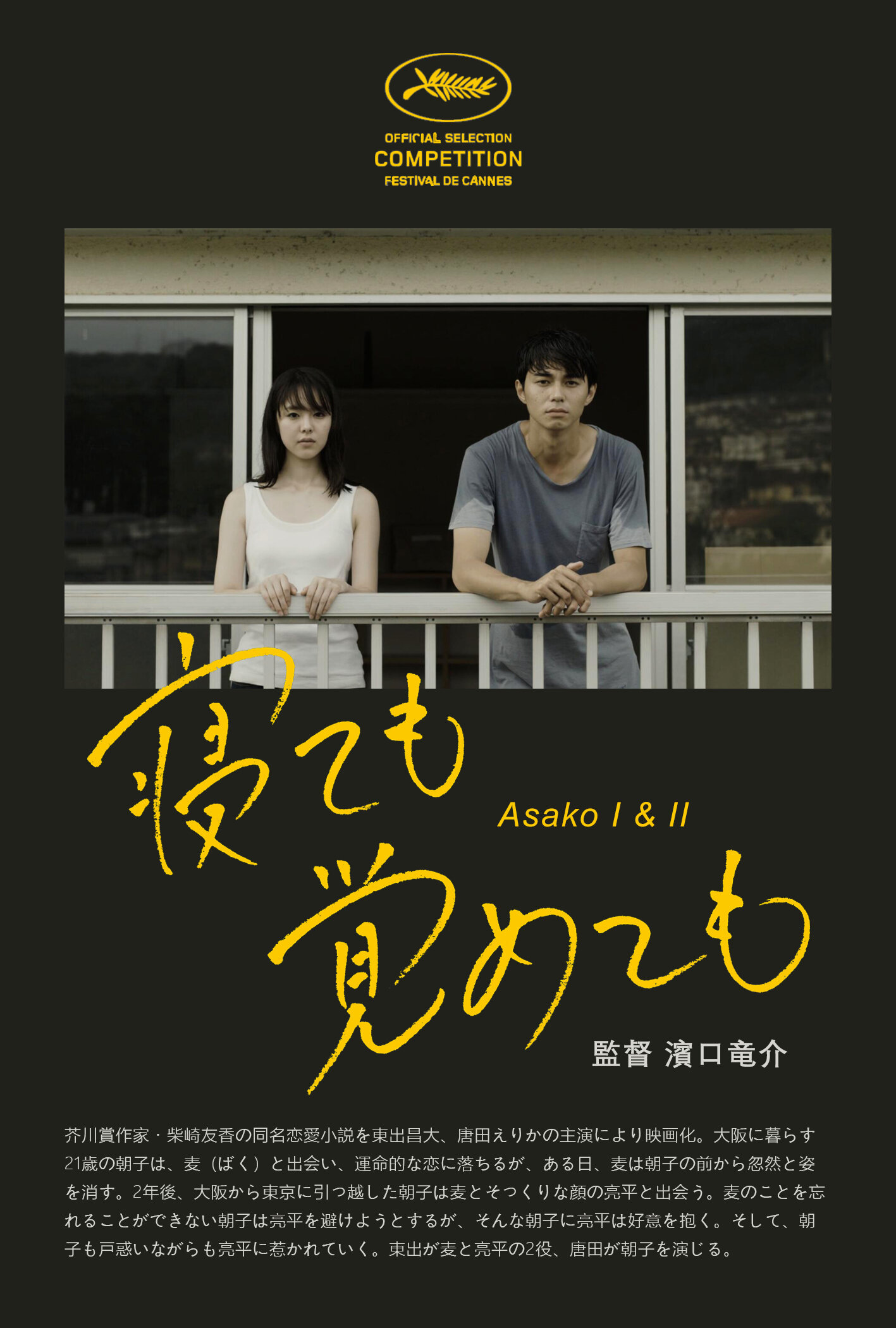 Чего меньше всего ждал от прославленного фестивального любимчика Рюсукэ Хамагути («Сядь за руль моей машины», «Случайность и догадка»), так это любовной мелодрамы с сюжетом, характерным скорее для аниме Макото Синкая. Судите сами: сердце главной героини, очаровательный скромницы Асако, крадет разбитной парень Баку. Их любовь развивается стремительно, но свободолюбивый Баку однажды исчезает, не сказав никому не слова, и оставляет любимую с незаживающей душевной раной. Но время лечит и через 2 года девушке выпадает возможность вновь пережить высокое чувство, на сей раз к офисному работнику Рюхэю, как две капли воды похожему на Баку. Однако беглец не заставит себя долго ждать и вернется к бывшей возлюбленной в самый неподходящий момент. По пересказу синопсиса может показаться, что это сюжет какой-нибудь сладенькой дорамы? А вот и нет, поскольку «Асако 1 и 2» вовсе не сопливое мыло, а томительное горько-сладкое романтическое удовольствие.