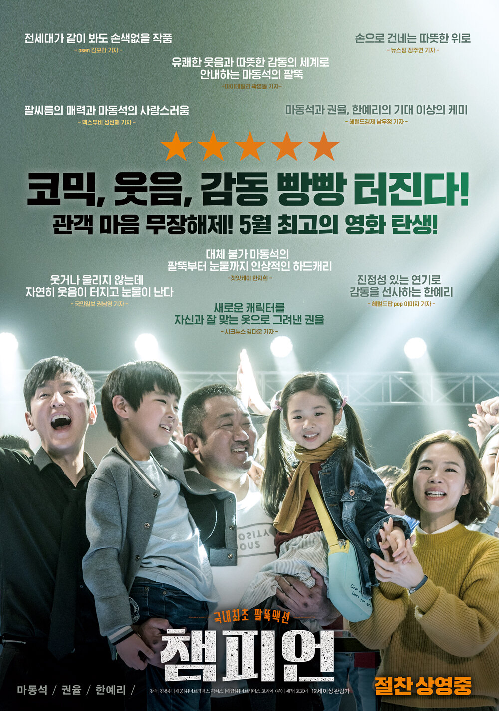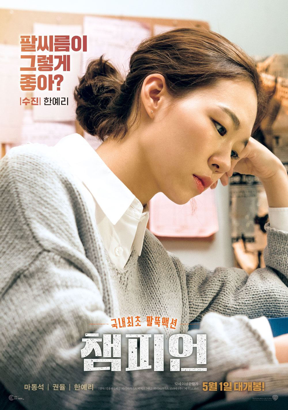 «Чемпион» — южнокорейская спортивная мелодрама с элементами комедии. На первый взгляд после просмотра трейлера может показаться, что эта новая версия известнейшего в свое время фильма «Изо всех сил» с Сильвестром Сталлоне в главной роли, но на самом деле авторы картины отдали дань уважения легендарному фильму, упомянув, что главный герой стал заниматься спортом именно после выхода той картины. По сюжету американец корейского происхождения живёт своей тихой и незаметной жизнью в Лос-Анджелесе, работая самым обыкновенным вышибалой в клубе, хотя в прошлом он профессиональный армрестлер, имея в копилке несколько наград и медалей. По воле случая ему предоставляется возможность принять участие в большом чемпионате в Корее, но сам герой не особо стремится приехать в родные края, так как прошлое ему причинило ужасную боль. Но, пересилив себя, он все же прилетает в Корею и, сам того не желая, появляется на пороге родного дома, где уже живут совсем другие люди, но, как в итоге оказалось, не совсем чужие. Узнав о существовании младшей сестры и маленьких племянников, главный герой всем сердцем хочет помочь бедной семье, поэтому, как никогда, готовится к соревнованиям с одной целью — победить, не подозревая, что организаторы за его спиной плетут свои грязные интриги.