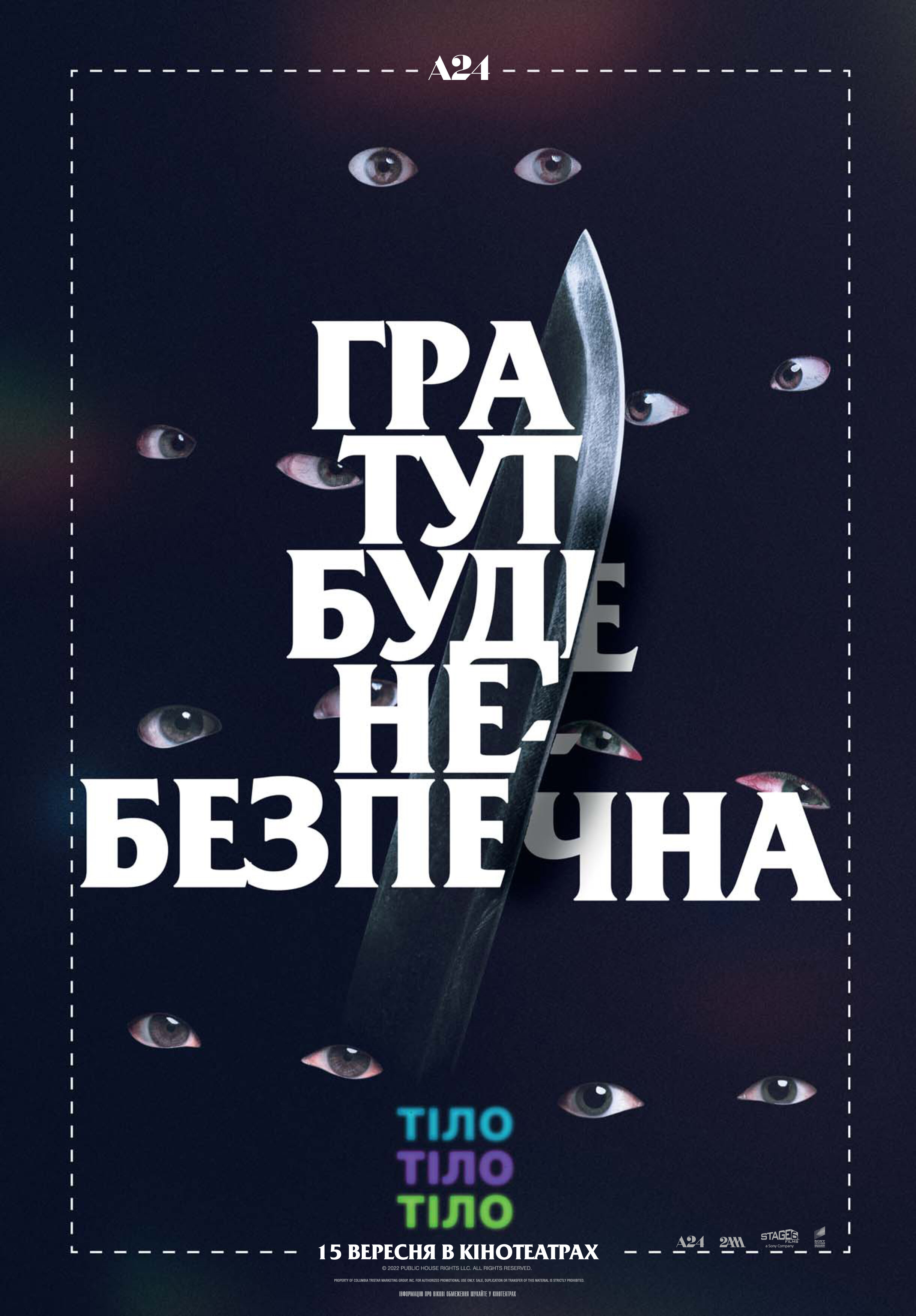 С самого начала и вплоть до финальной кульминации создается впечатление, что перед нами обычный хоррор с сотни раз уже проторенными сюжетными ходами. Сидишь, и думаешь, - ну да, в принципе интриги тут присутствуют, конфликт какой-никакой постепенно вырисовывается, персонажи худо-бедно раскрываются, но при этом того, чего мы еще не видели все нет и нет. Дом, молодые укурки, убийства на манер '10 негритят'... Короче, все как в советской песенке - 'Вжик, вжик, вжик, вжик - уноси готовенького, вжик, вжик, вжик, вжик - кто на новенького'. Но самых терпеливых зрителей, а таких я думаю будет немало, поскольку картины с подобным концептом цепляют (ну право дело, любопытно же узнать кто окажется убийцей-психопатом, заодно проверив собственную интуицию), ждет невероятный сюрприз в конце! Представив по своей внешней конструкции среднестатистический слэшер, А24 неплохо так выкручивается из сложившихся обстоятельств, наполняя его свежими решениями за счет неожиданной концовки, пересматривающей все предшествующие события. Все клише и прочие банальности тут же выветриваются под наступившим в финале, не побоюсь этого определения - шок-контентом, и фильм сразу же воспринимается иначе.