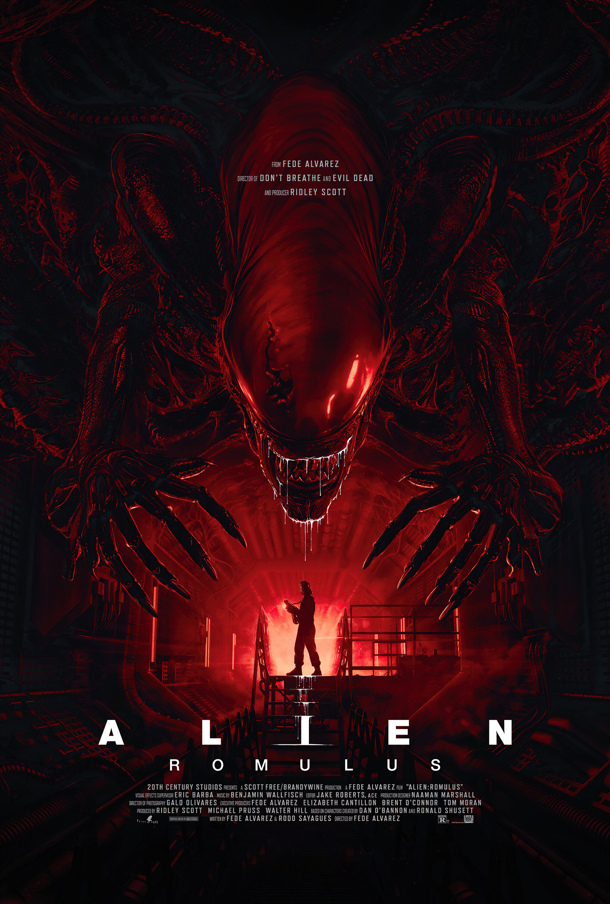 Альварес - естественно фанат серии, работать с чужим материалом любит (уже были сериал 'От заката до рассвета', 'Зловещие мертвецы: Черная книга') и перед съемками дотошно изучил все наследие. Он не стал задротить над каким-то философским посылом истории, справедливо отказавшись покушаться на роль демиургов вселенной. Ну куда побеждать старика Ридли Скотта в его собственной библиотеке из чистого криптонита. От величия тут лишь капитолийская волчица на люках и соназвание. В 'Ромуле' нельзя ни на секунду забывать о том, что чужая интеллектуальная собственность - вещь тугая и плохо уживающаяся с любыми вторжениями.